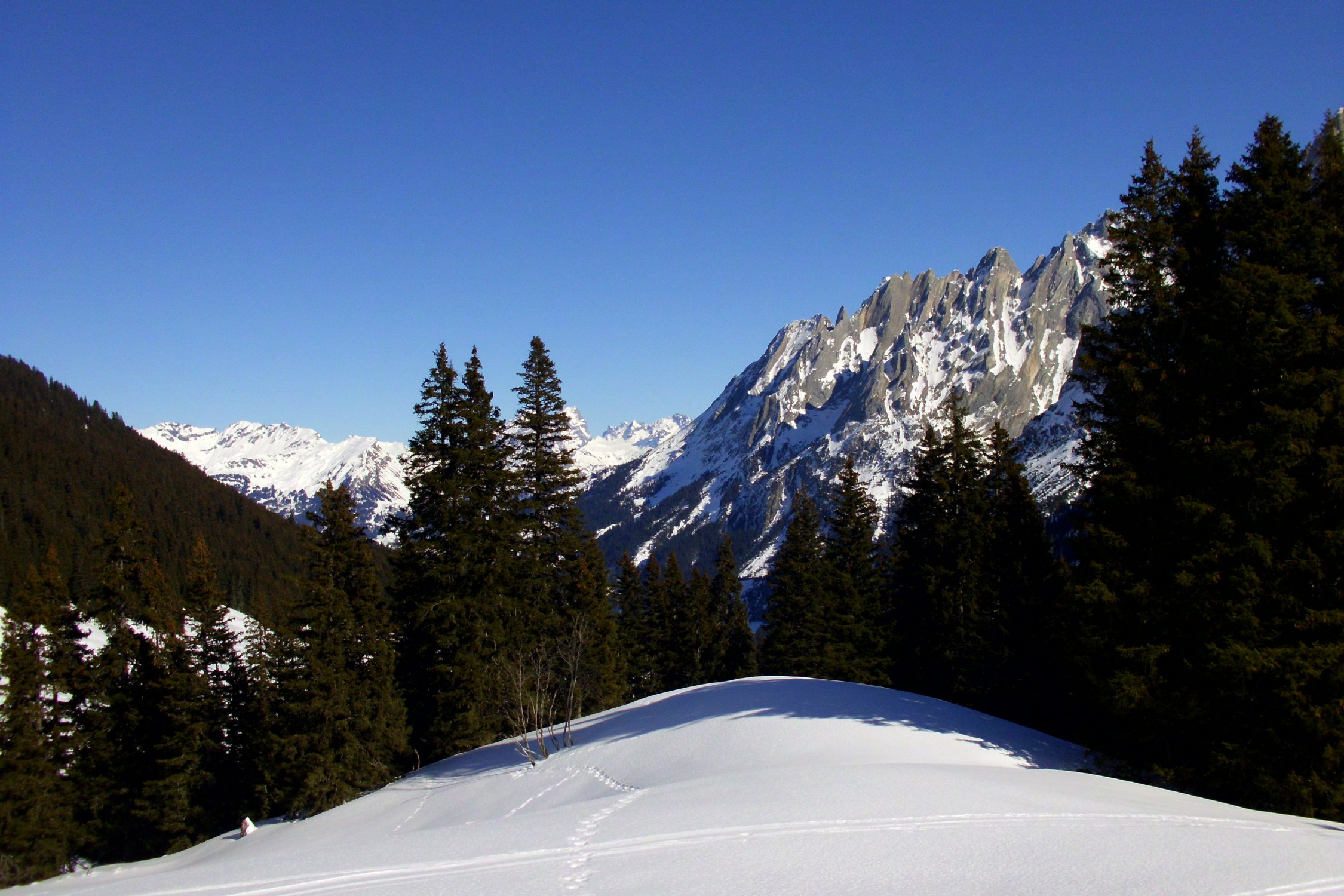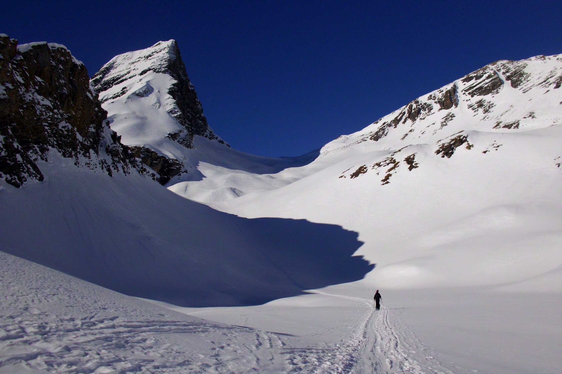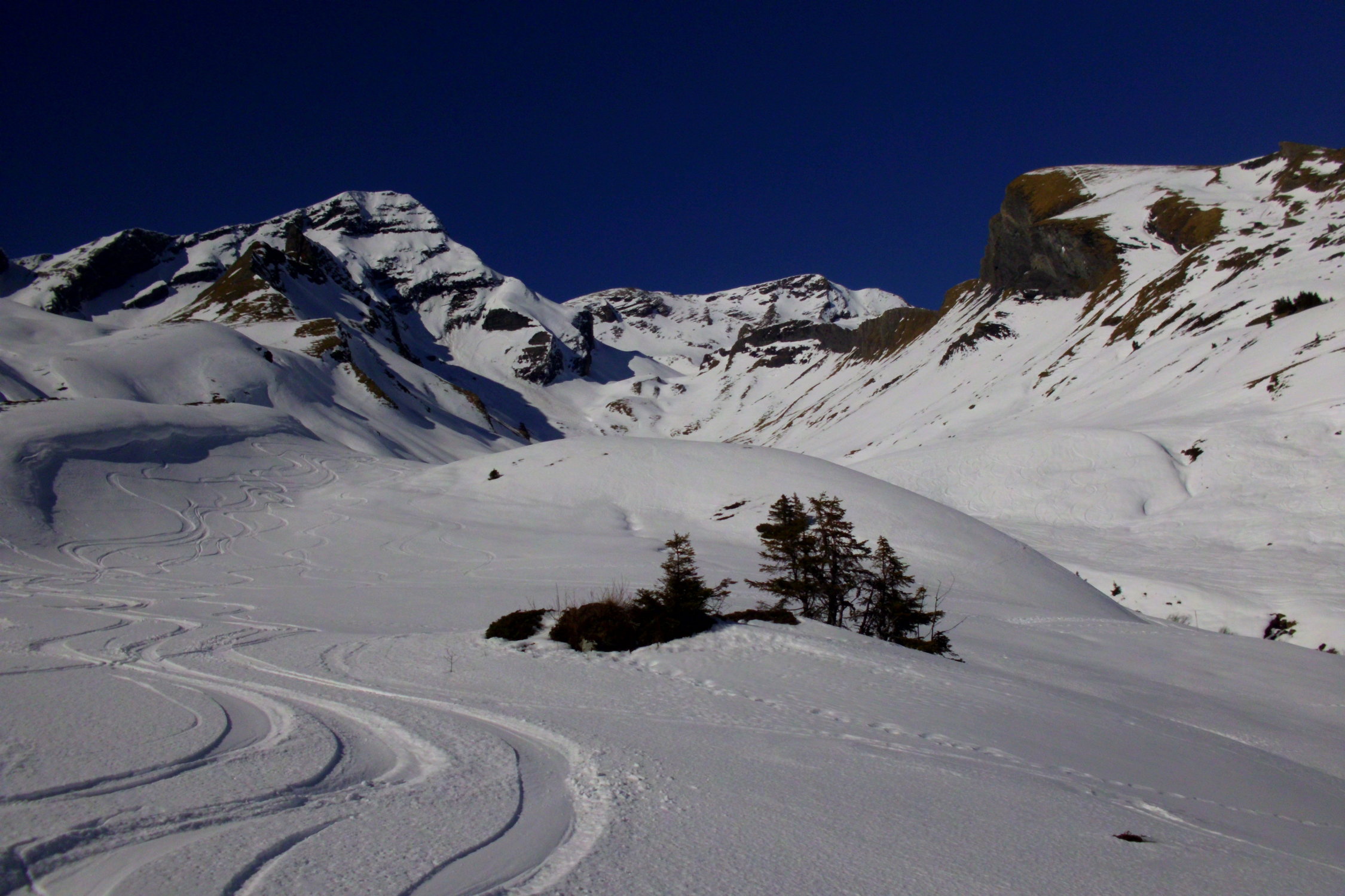 bei der Abfahrt der Aufstiegsroute entlang hat es noch einige schöne Pulverschneehänge...zur Zeit evtl. lohnender als Wischbääch...