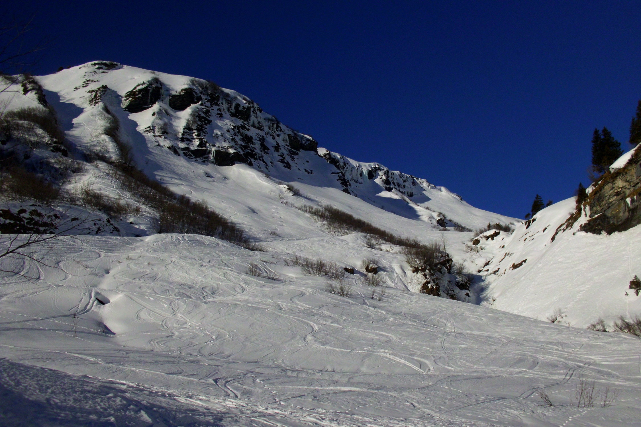 heute nichts, ältere Nassschneerutsche im Wischbäächtal...