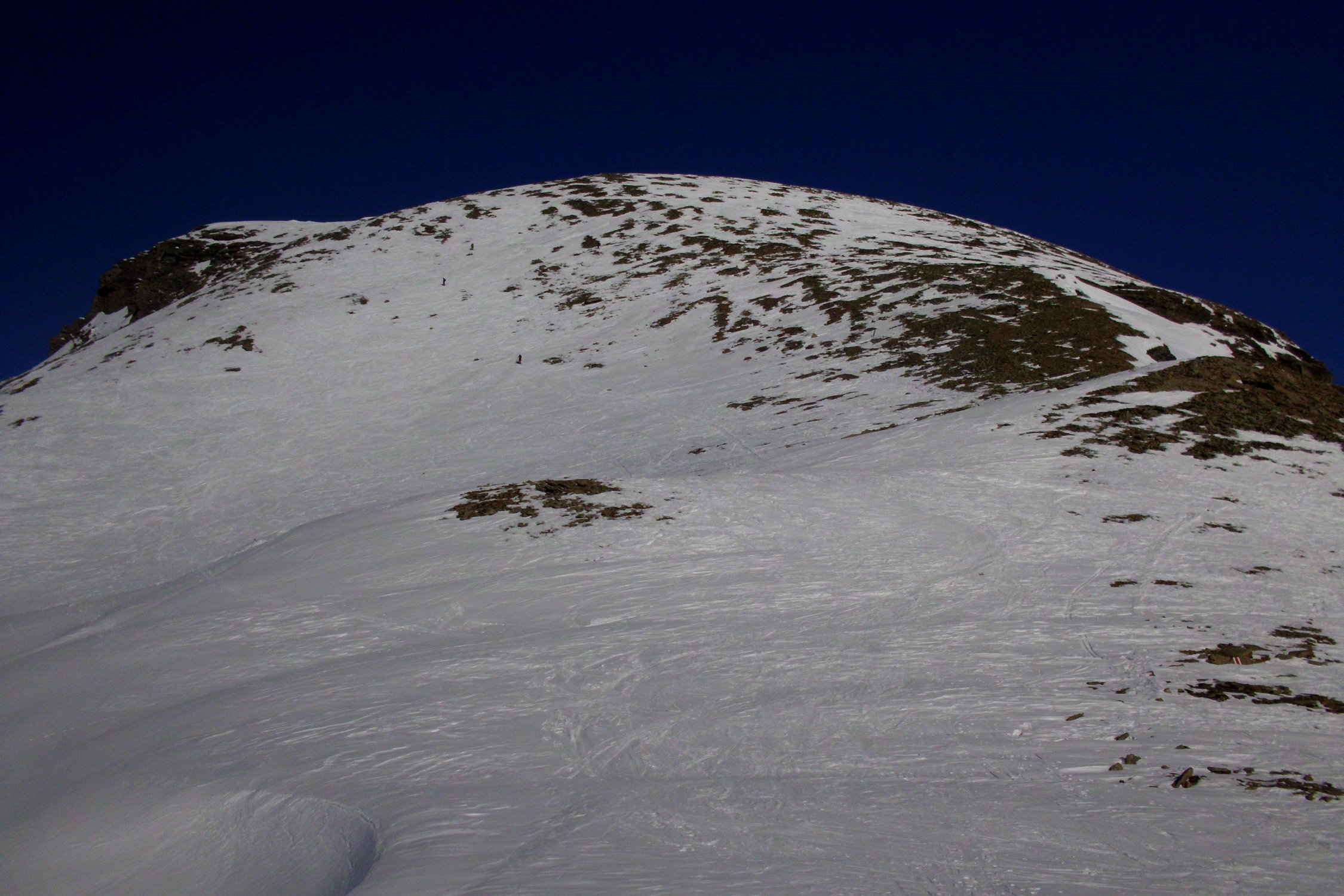 der Gipfelhang ab Wart ist noch mit Ski begehbar...jedoch muss zwischen den Steinhaufen abgerutscht werden. Wir haben das Skidepot etwas oberhalb Wart gemacht und sind zu Fuss hoch.