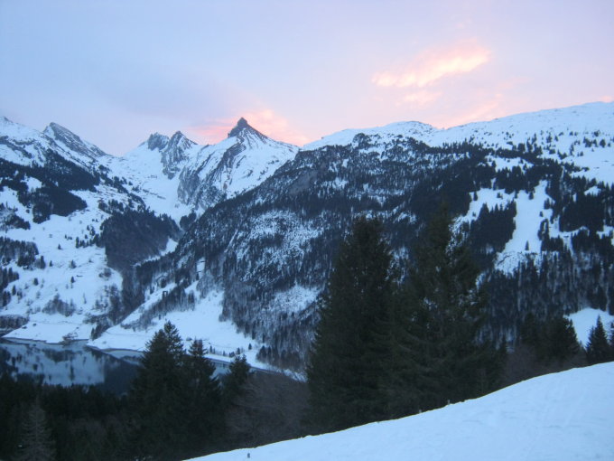 Über dem Wägital sorgte der Föhn für ganz ordentliches Wetter. Bei der Abfahrt um 10 Uhr gute Sicht.