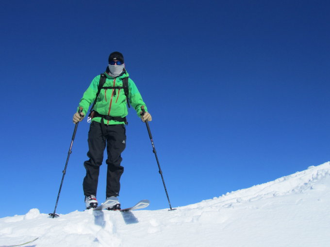 Sehr sichere Verhältnisse. Gipfelhang der Rotbühelspitze gut begehbar. Harscheisen in der z.T. leicht vereisten Aufstiegsspur hilfreich. Abfahrt Gipfelhang windgepresster Schnee. Nach Steilhang bis zur Zollhütte Pulver. Danach unterschiedliche Schneearten in verspurtem Gelände. Wolkenloser Himmel mit sehr guter Fernsicht.