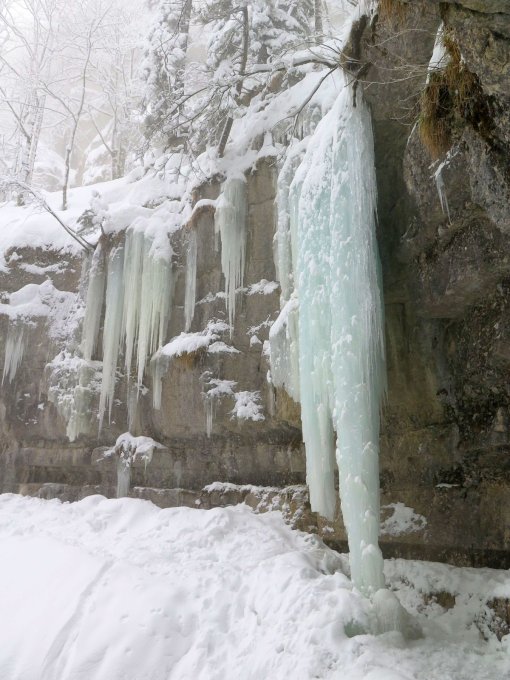 Schöner Pulverschnee vom Vortag, leider etwas wenig. Gute Verhältnisse in der Schlucht, Pickel und Steigeisen kamen nicht zum Einsatz, denn eine grössere Gruppe (mit Ski!) war unmittelbar zuvor durchgestiegen, so dass eine sehr solide Spur lag.
