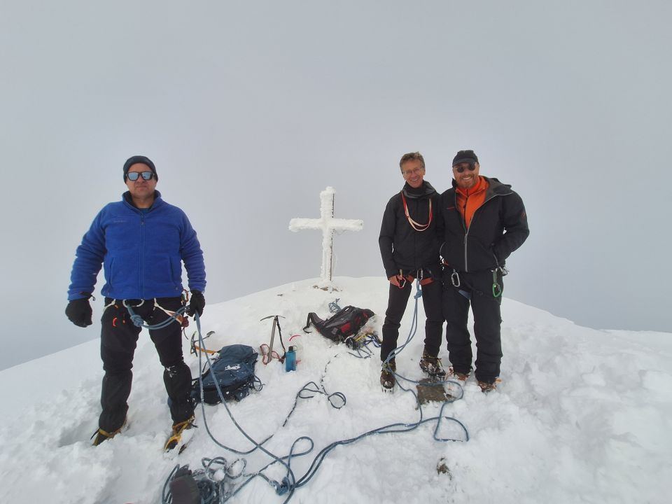 Neuschnee hat sich nocht nicht gesetzt, und hat sich auch noch nicht mit dem Altfirn, bzw Blankeis verbunden. Daher Vorsicht im unteren steilen Bereich des Gletschers.
