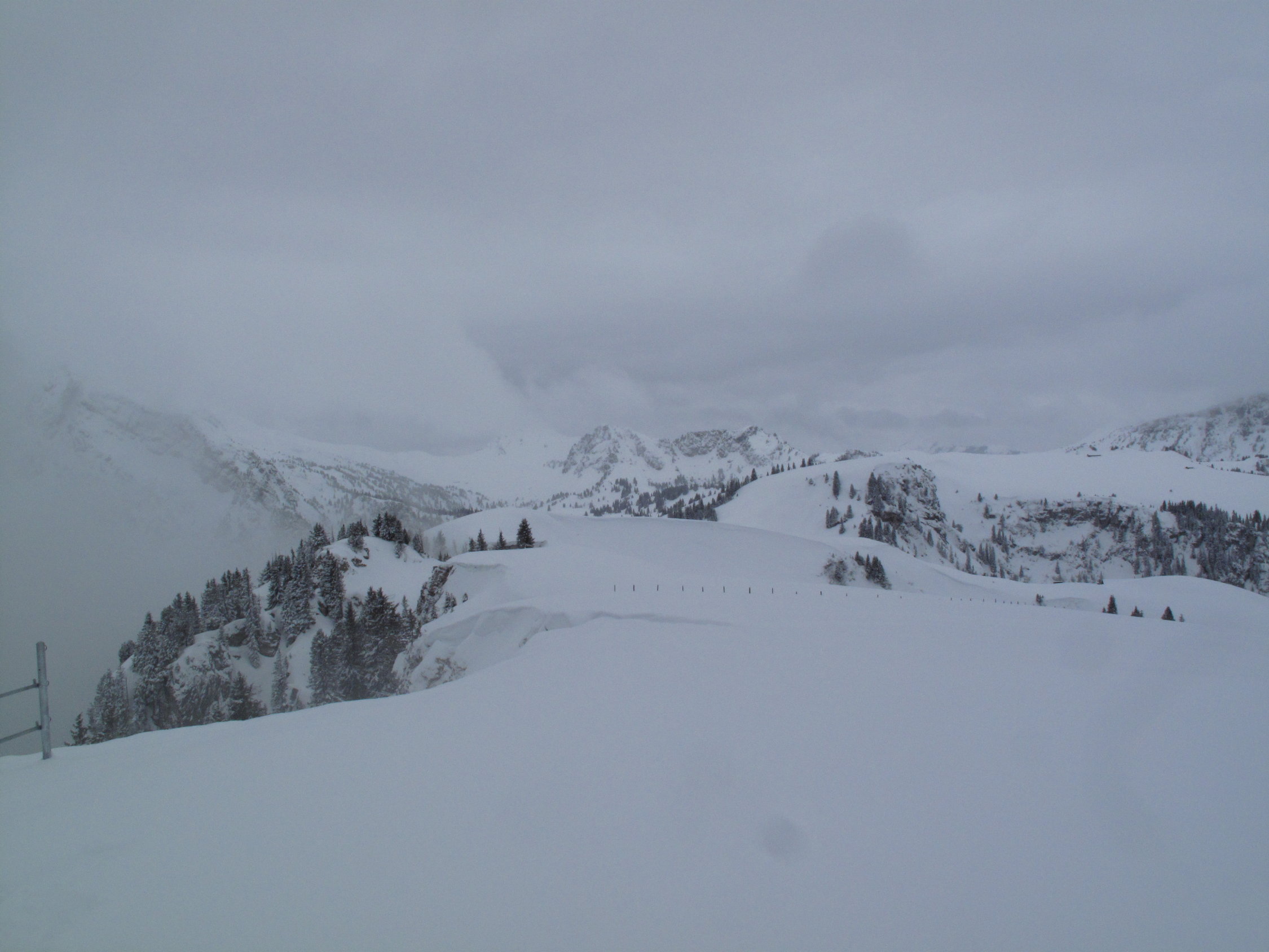Nachmittagstour, Start ca. 14 Uhr. Problemloser Aufstieg in guter Spur. Unten etwas pampig, Mittelteil lässt schon beim Aufstieg einen Deckel unter 10-15 cm Neuschnee erahnen, ab Gründli Pkt 1573 bis oben dann wunderbar. Gipfelhang leicht windgepresst, Durchquerung des obersten Waldes und dann anschliessender Steilhang mit feinstem Powder und noch nicht allzu vielen Spuren. Ab Chalet Gründli immer noch gut fahrbar, aber der Deckel unter dem Neuen lässt sich erfühlen. Ab Guschtistall wie immer mässig, drum bin ich dem Weg gefolgt.