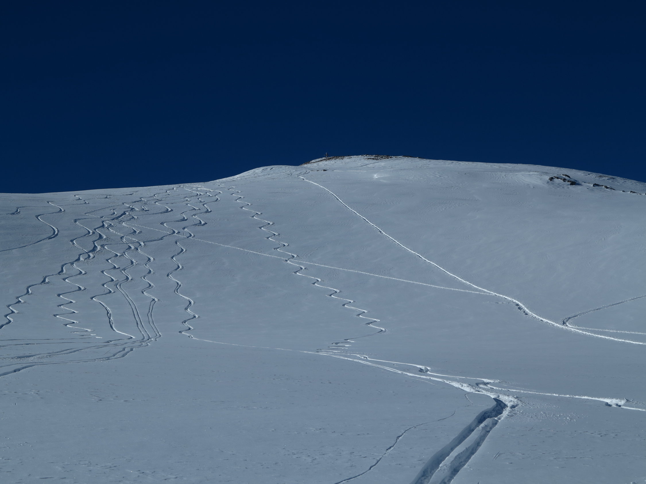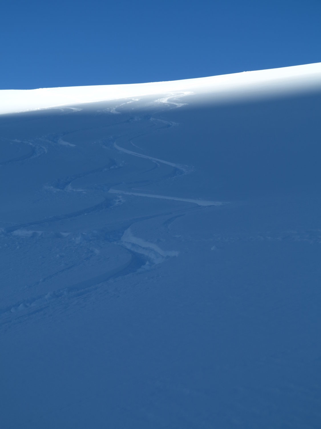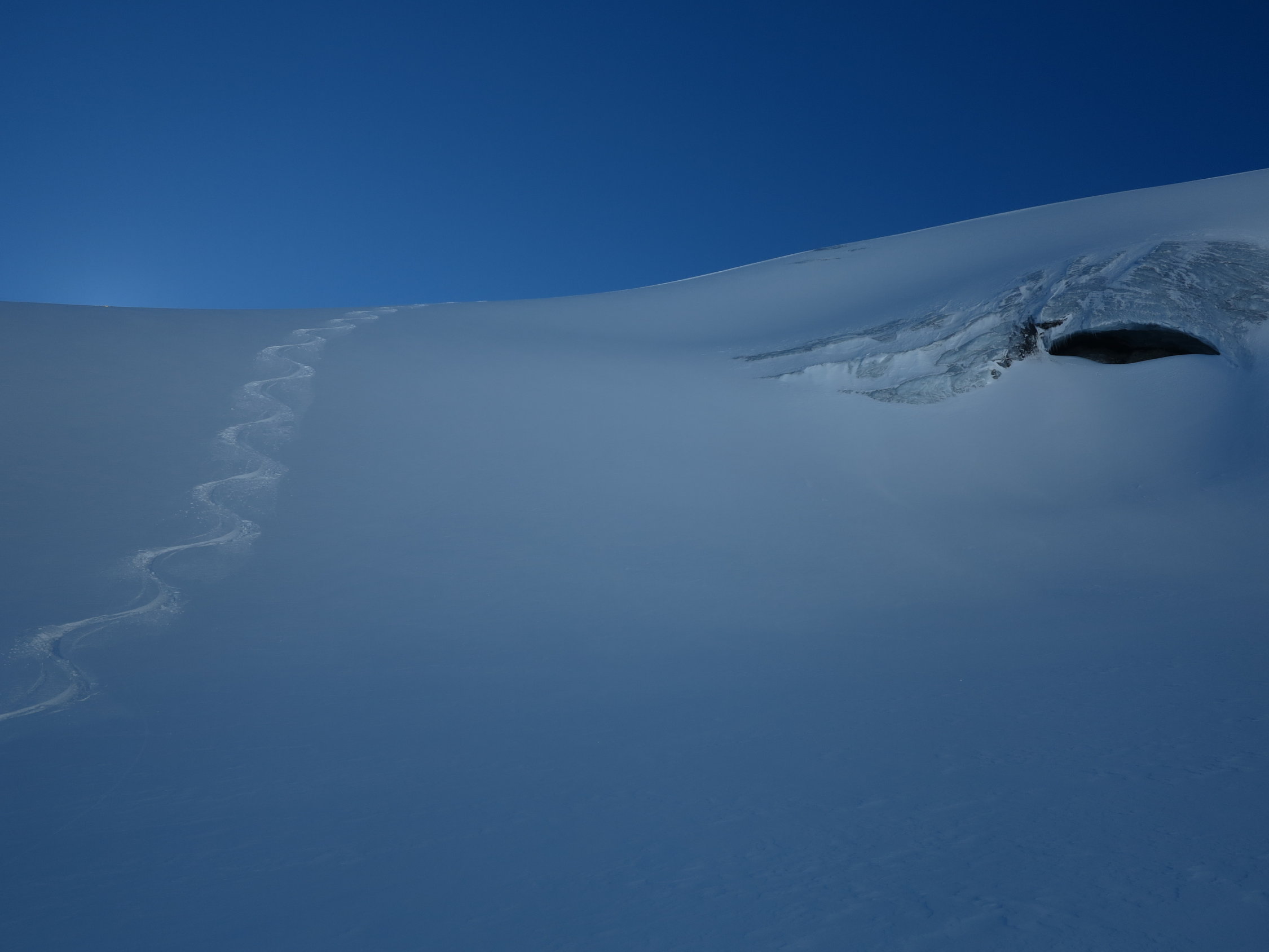 Der Wildstrubel wurde erst heute gespurt. Es hatte noch viiiiieeeel freien Platz für wunderbare Pulverschwünge.