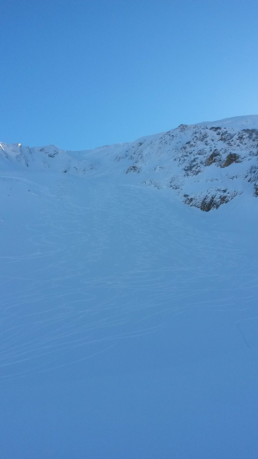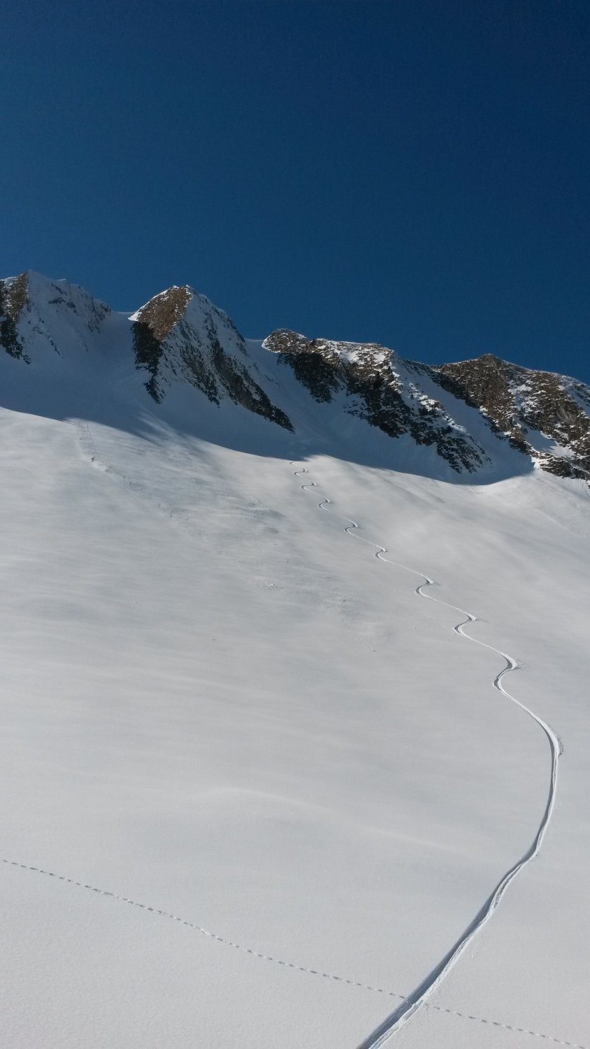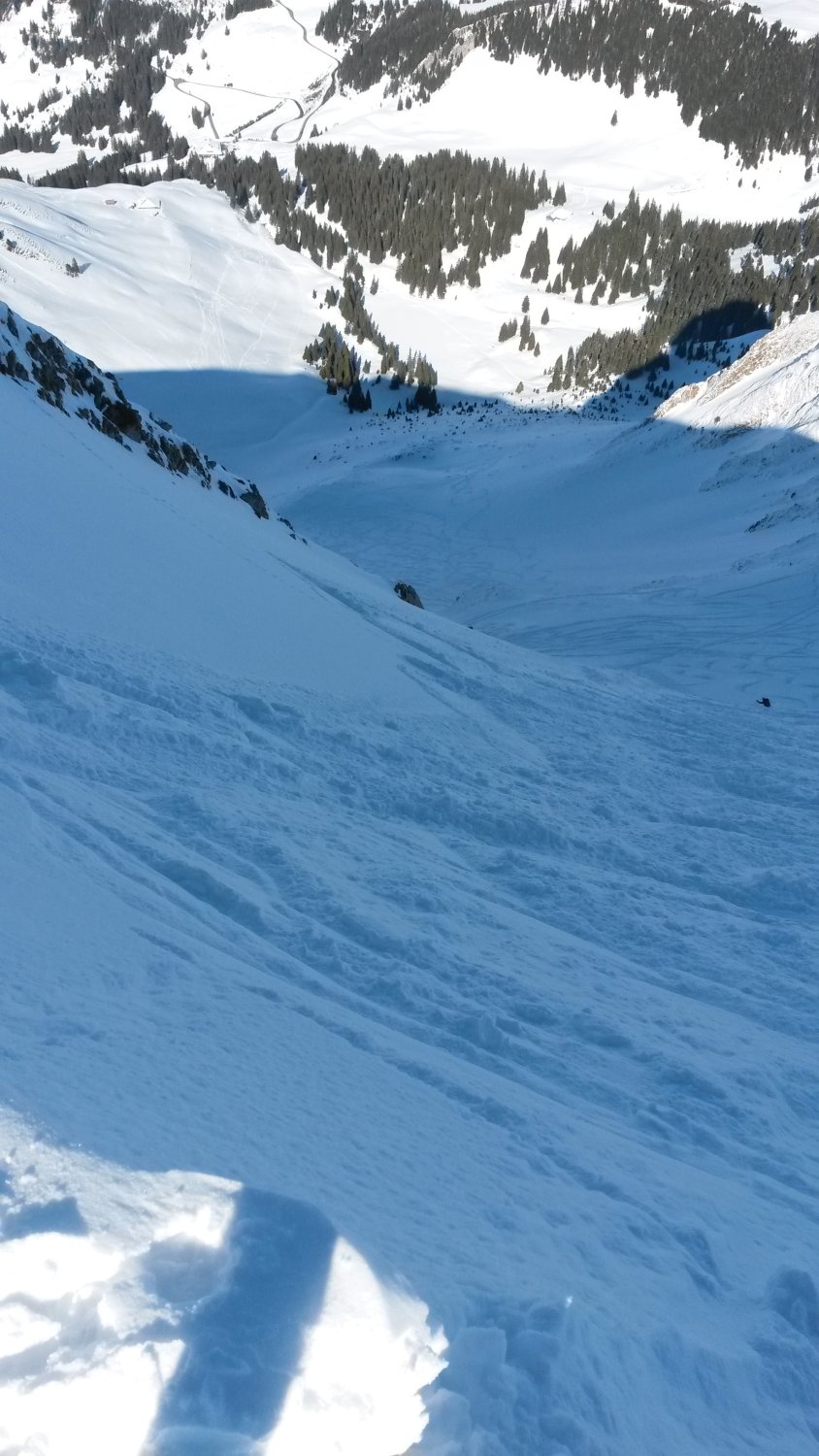 Zu meinem Erstaunen war die Unterlage im oberen Teil der Nordflanke nicht all zu gut und man trifft dennoch Steine an. Der Spurlage an, haben einige etwas Stahl liegen lassen. Aber ansonsten hatte es Pulver vom feinsten gehabt und unten raus wird die Unterlage immer besser.