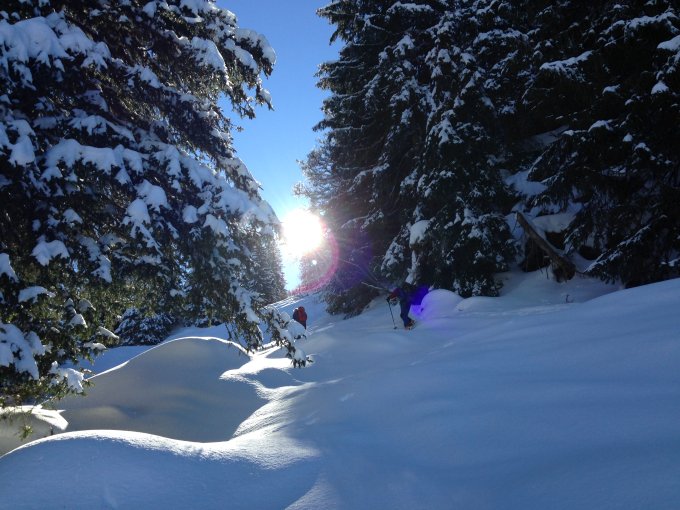 Sehr gute Verhältnisse, tiefe Minustemperaturen, wolkenloser Himmel und oben 30 cm, Mitte 20 cm, unten Hartschnee tragend. Die Abfahrt im leichten Pulverschnee mit nur wenigen Spuren war ein Genuss.