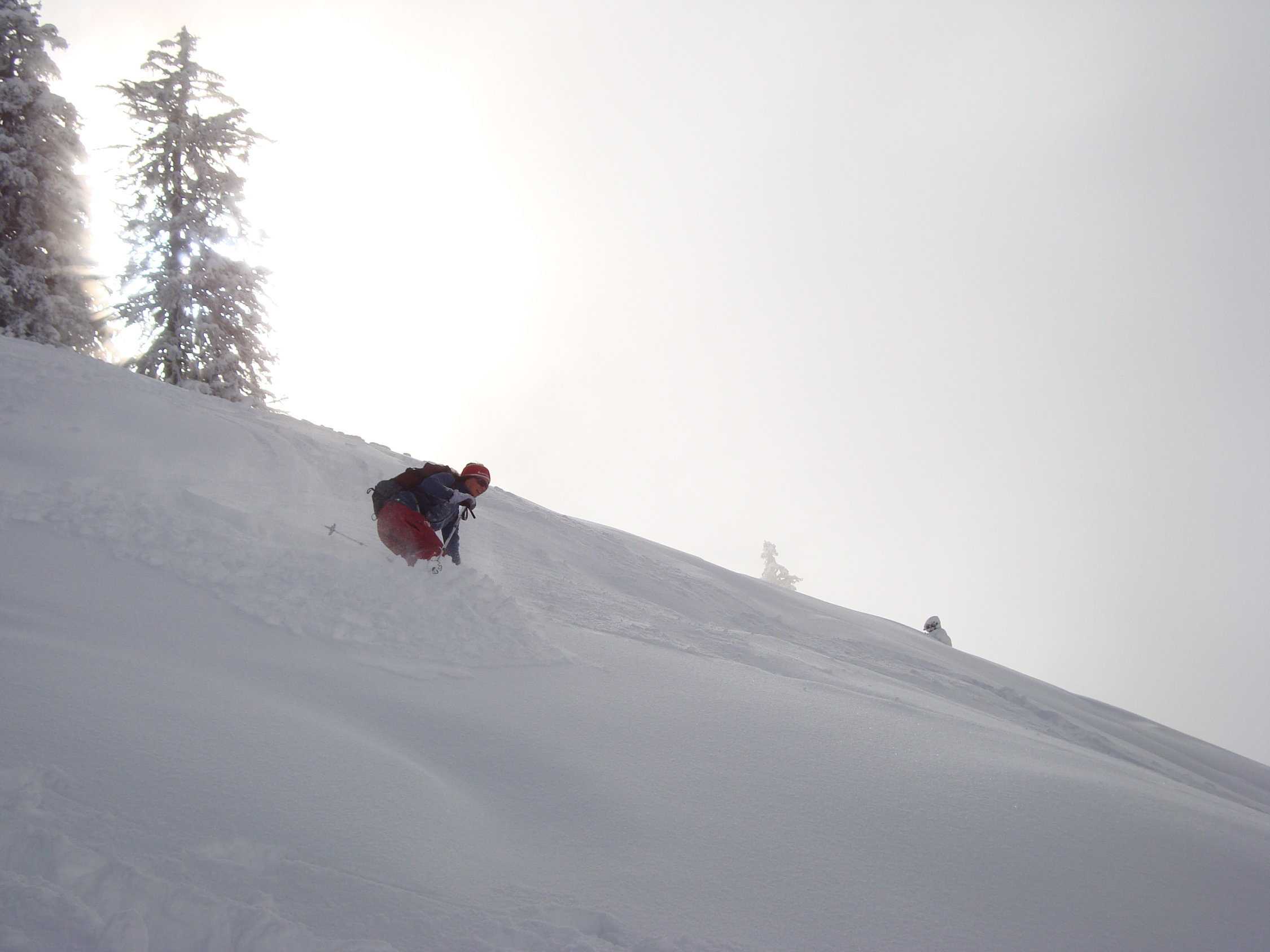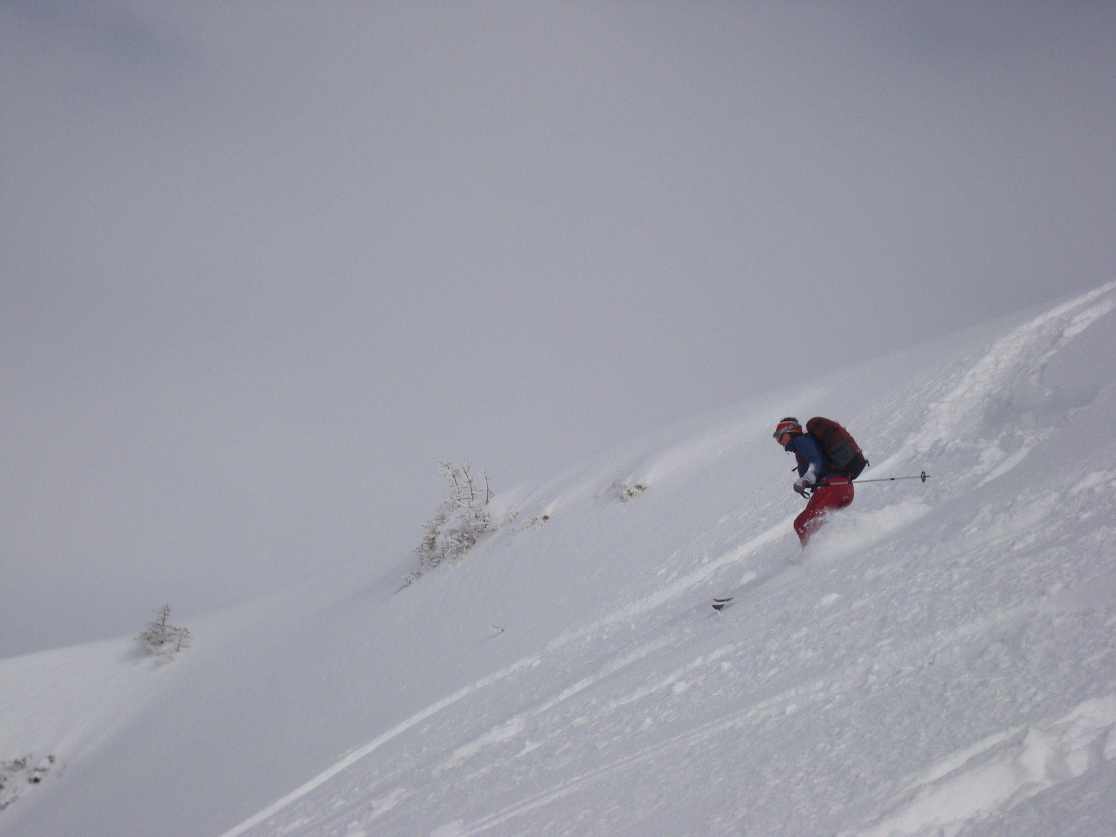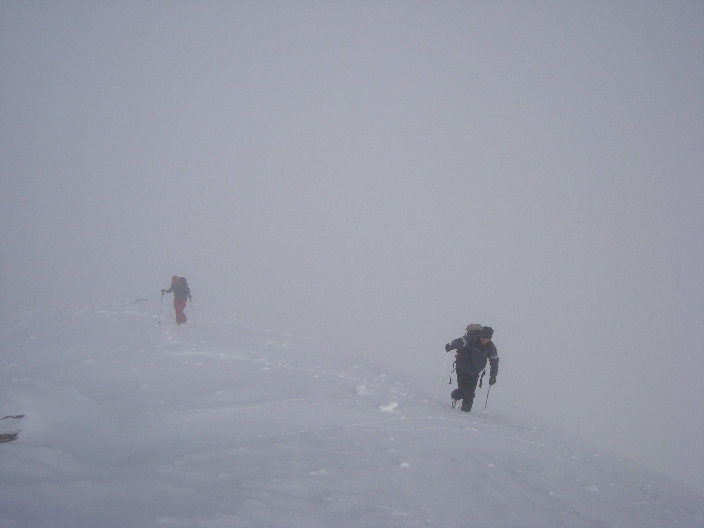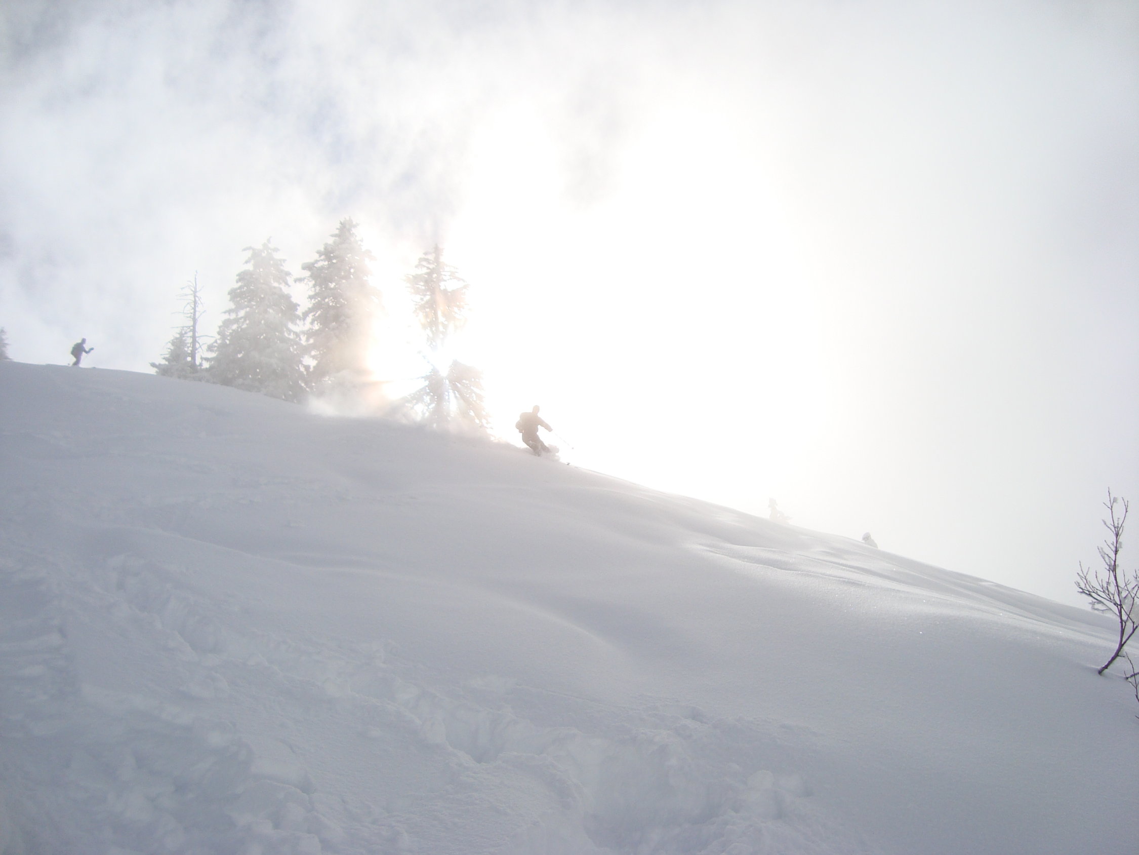Im Aufstieg zum grössten Teil diffuses Licht mit ein paar zaghaften Aufhellungen. Die Neuschneehöhe liegt zwischen 15 bis 30cm.