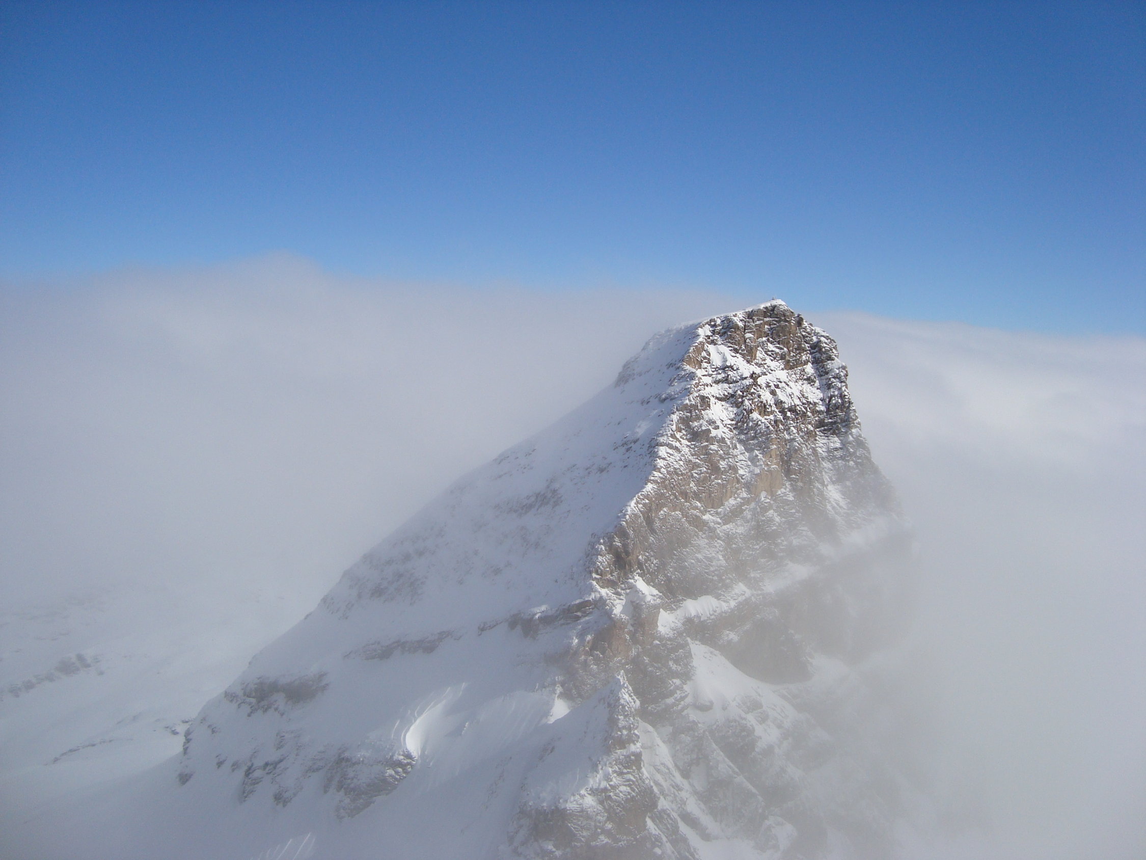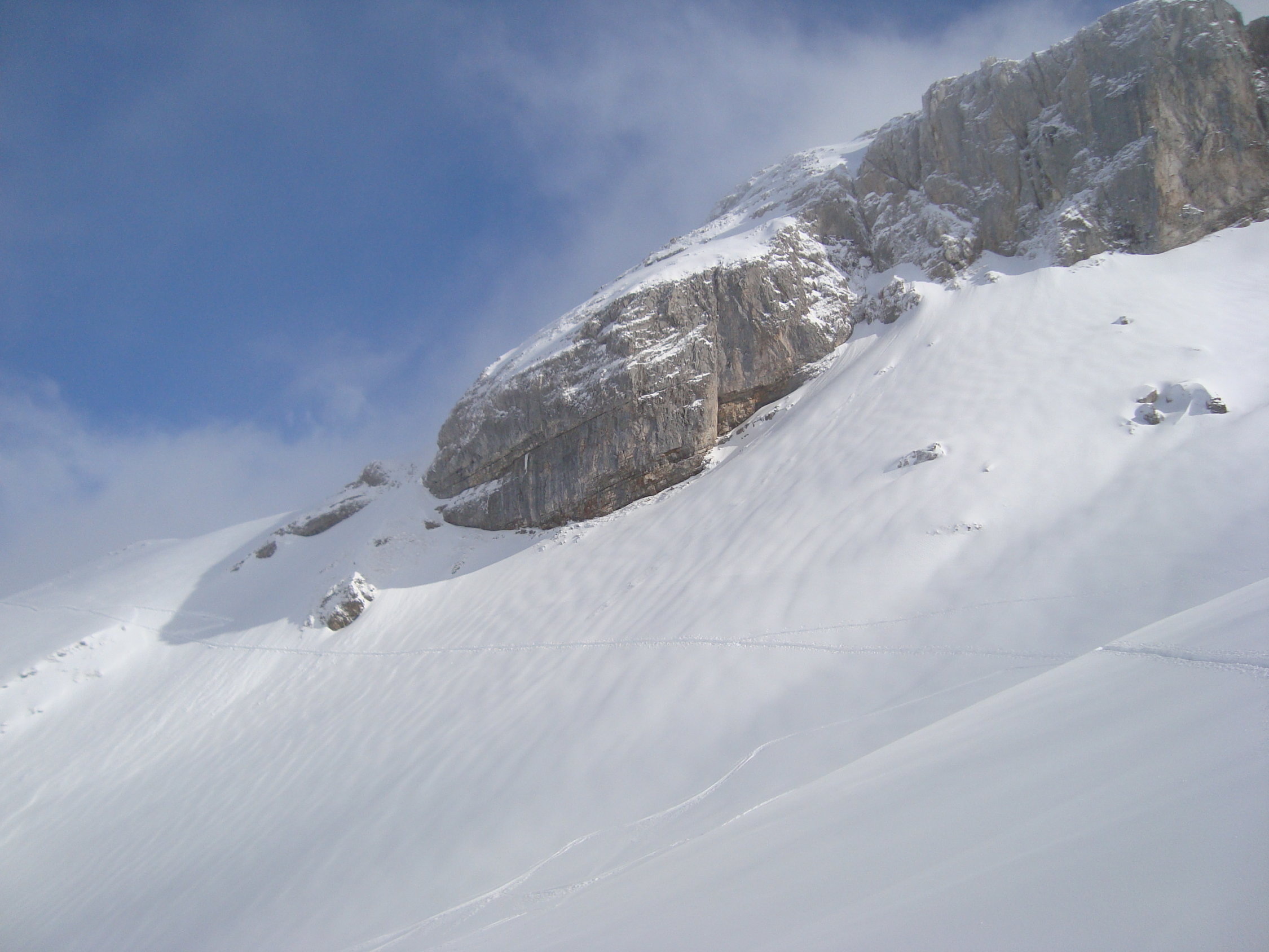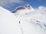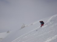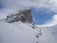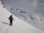 Ich bin heute mit den Skier bis zum Gipfel aufgestiegen und auch von oben abgefahren. Allerdings ist dieser, wie so oft, recht abgeblasen. Es hat einige "Spielverderber" unter der dünnen Schneeschicht. Mit etwas Vorsicht geht es aber.