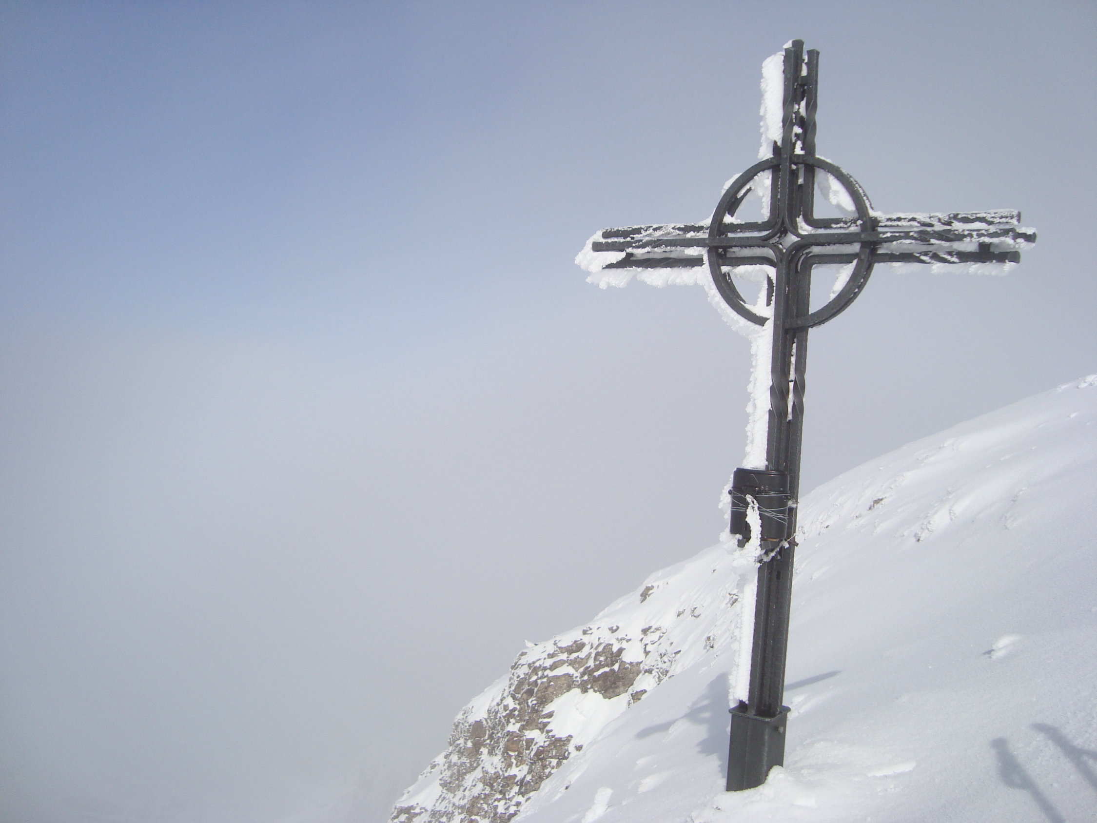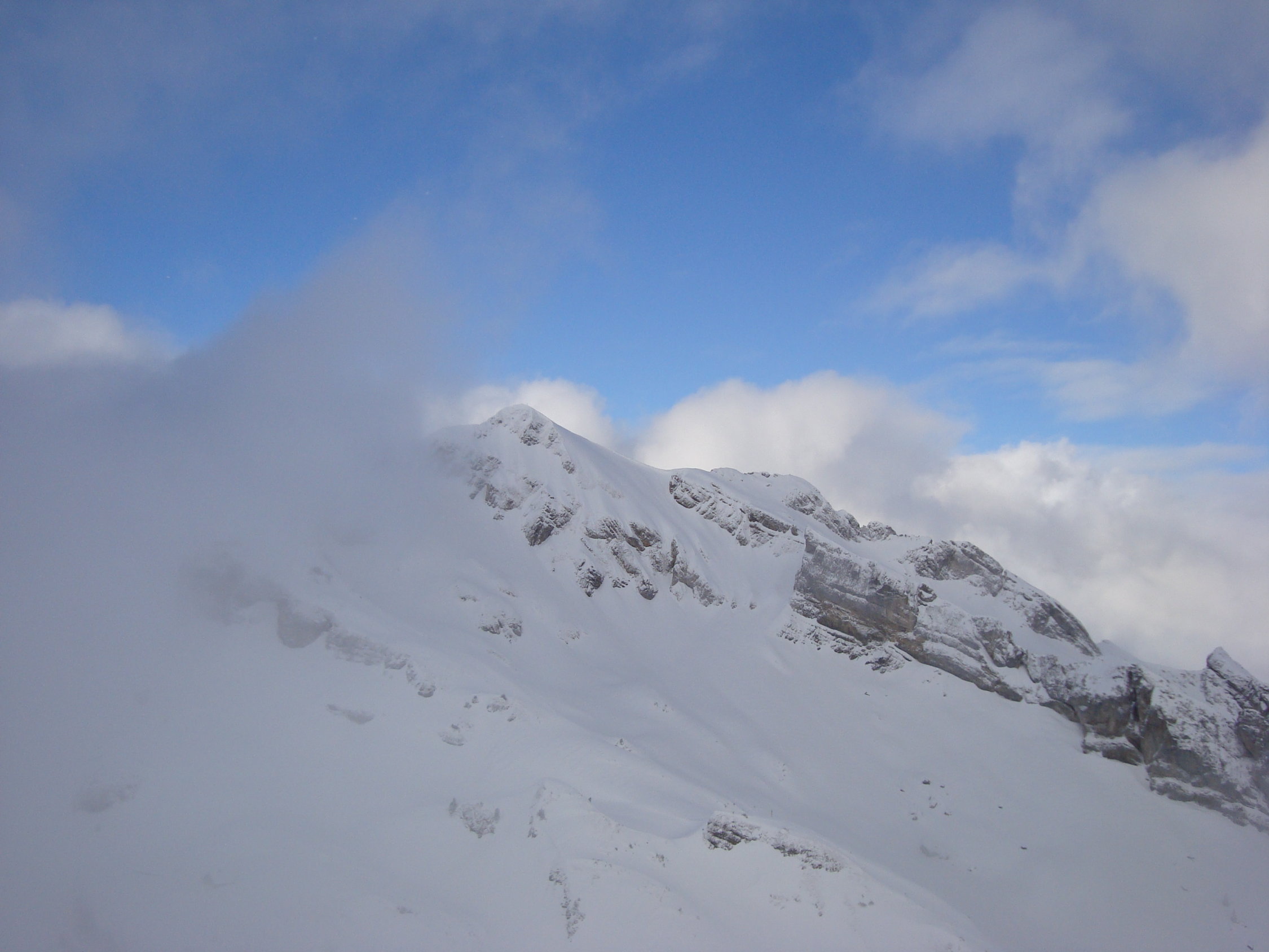 Bis zu den Spilauhütten war schon eine Spur gelegt. Ich wählte dann allerdings eine mir geläufigere Aufstiegsroute. Am Mälchbödeli vereinten sich unsere Spuren dann wieder, nun durfte ich in schönen leichten Pulver, nicht allzu anstrengend, durch jungfräuliches Gelände spuren. Auch sowas macht Freude! Auf dem Gipfel machte es dann auf, Sonne pur.