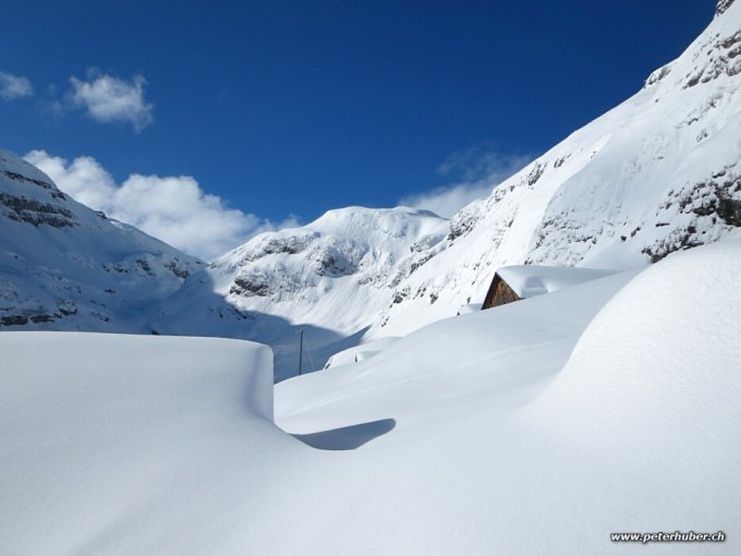 Der Schnee wurde heute recht feucht. Nach den neuen Niederschlägen neu beurteilen. Schnee hats jede Menge.