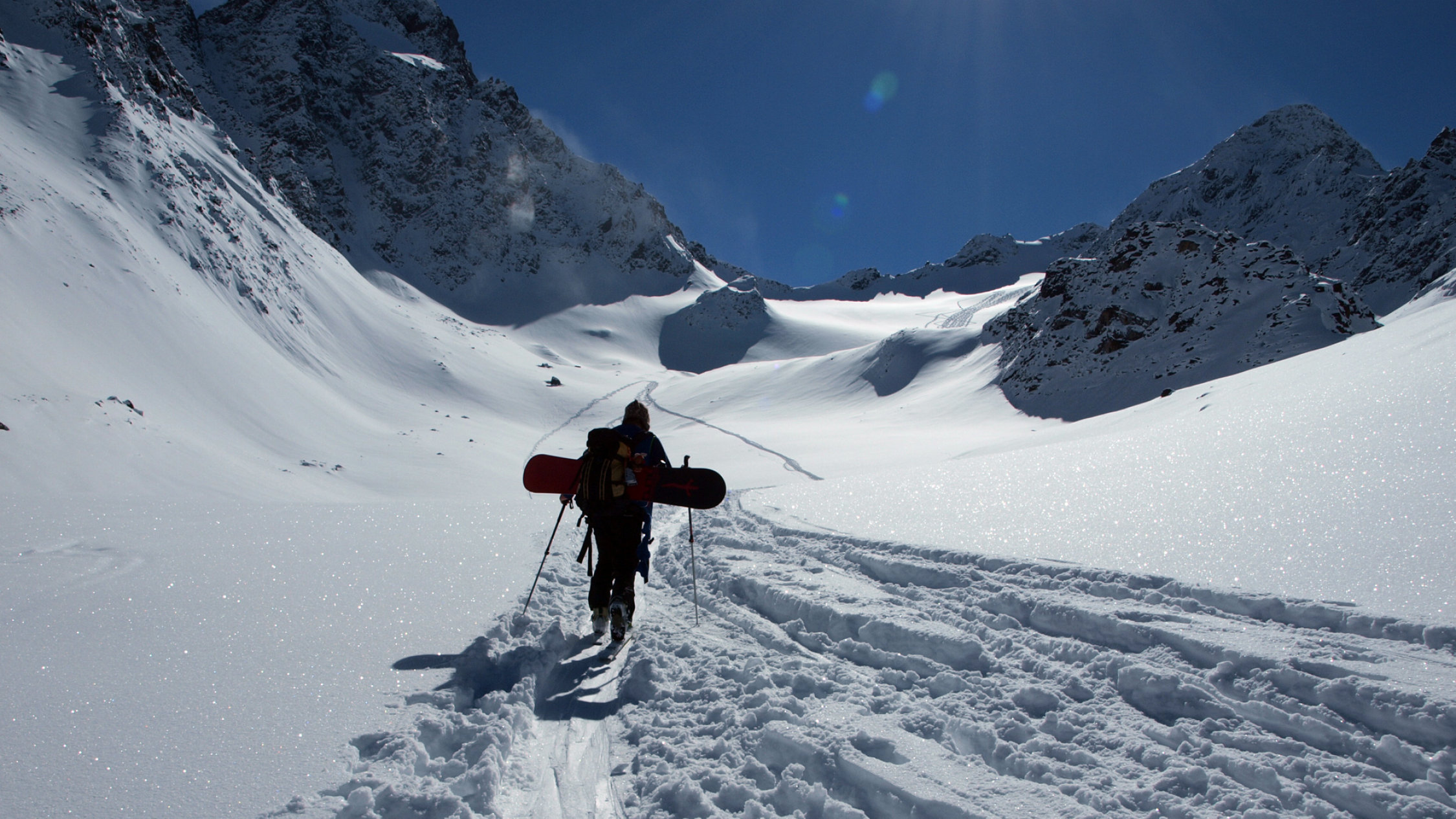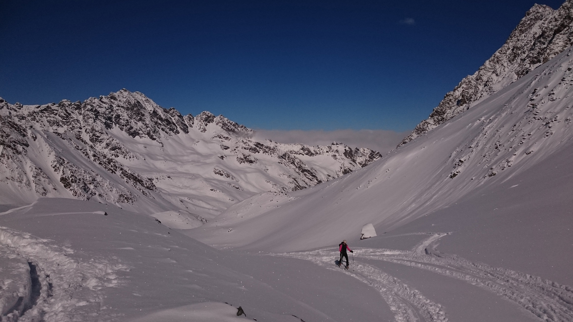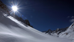 In der Gesamtheit betrachtet trotzdem wenig Schnee, was man an den vielen Steinen merkt, welche zwischendurch am Belag kratzen. Im gesamten Gebiet nicht allzuviel Schnee, aber derzeit reichts zum Skifahren. Die letzten Hänge unterhalb vom Westfalenhaus, also bevor man den Talboden erreicht, ist vorsichtige Fahrweise angesagt, weil ziemlich viel Steine herausschauen. Insgesamt jedoch Top Bedingungen.