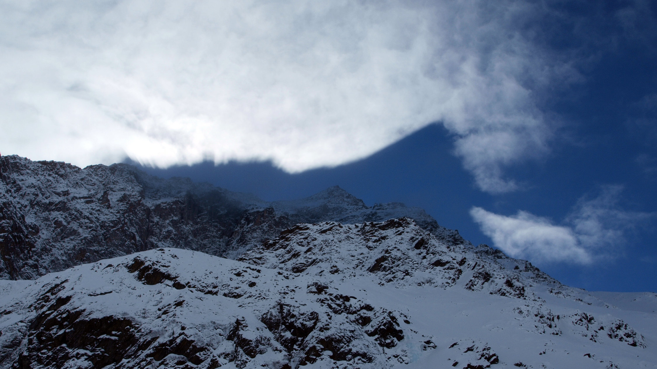 Im Längental schwacher, am Gipfel kräftiger kalter Wind aus Sektor Süd