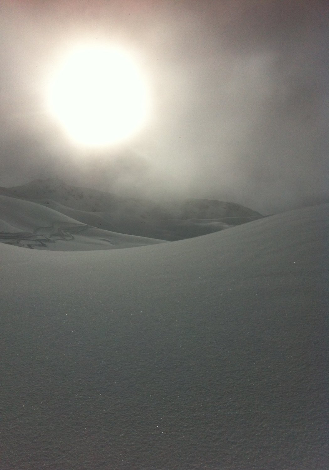 Als die Wolkendecke aufgerissen hat, sind wir von Garvers-dil Tgom ins Val Nual gefahren. Hier hatte es ca. 15cm Pulverschnee. Z.T. waren noch alte Spuren (von gestern?) zu sehen. Diese haben jedoch beim runterfahren nicht gross gestört, da z.T. schon wieder leicht eingeschneit.
