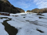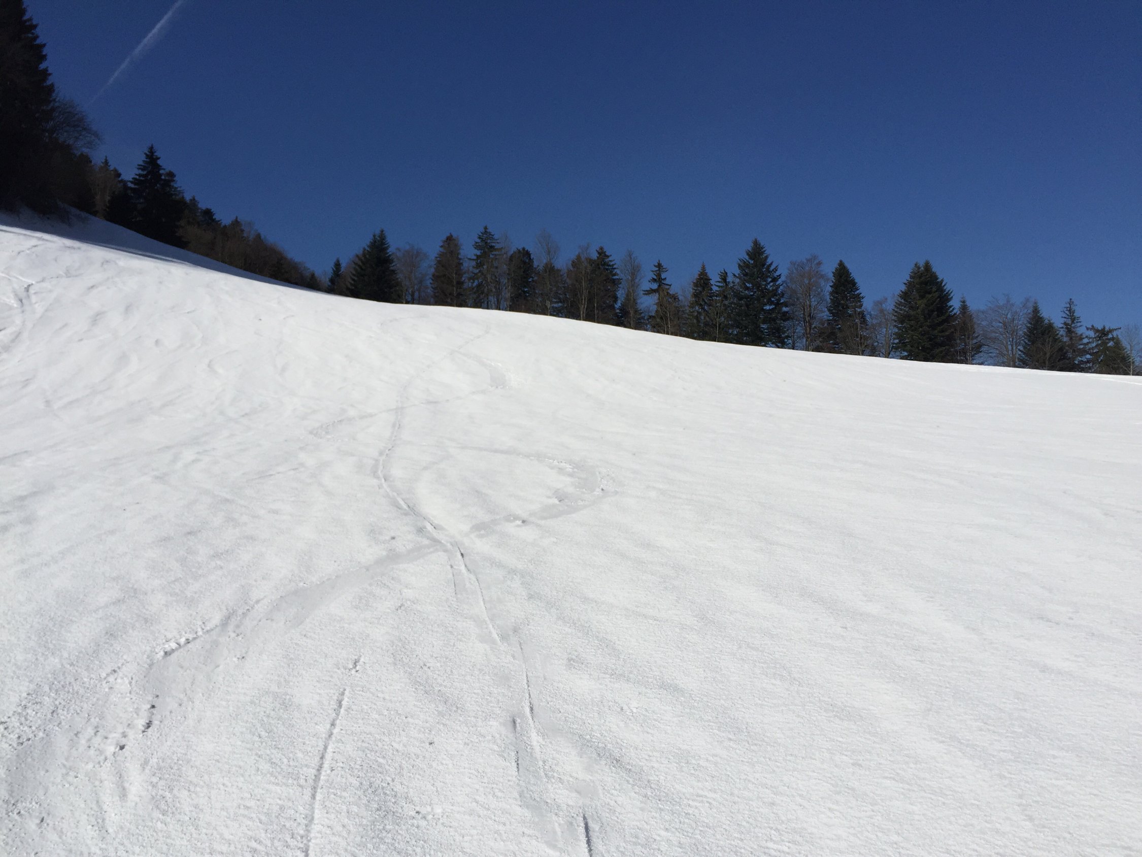 Der Regen und Wind von Anfang Woche haben dem Schnee zugesetzt. Start ab Talstation Skilift aber noch gut möglich. Schnee völlig durchtränkt und dann gefroren, also eigentlich ideale Frühlingsverhältnisse. Dazu heute schönes Wetter! Aufstieg ohne Probleme, Abfahrt wunderbare Schneeverhältnisse auch im Gipfelhang, der letzte Woche noch Bruchharsch aufwies. Jetzt tragender Firn mit ganz leichter Graupelauflage, super. Schöne Schwünge bis zum Auto geniessbar.