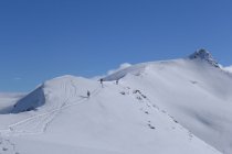Stockhorngrat ist gut mit Ski begehbar. Anfellen empfiehlt sich hinter der Liftstation in der Sonne.