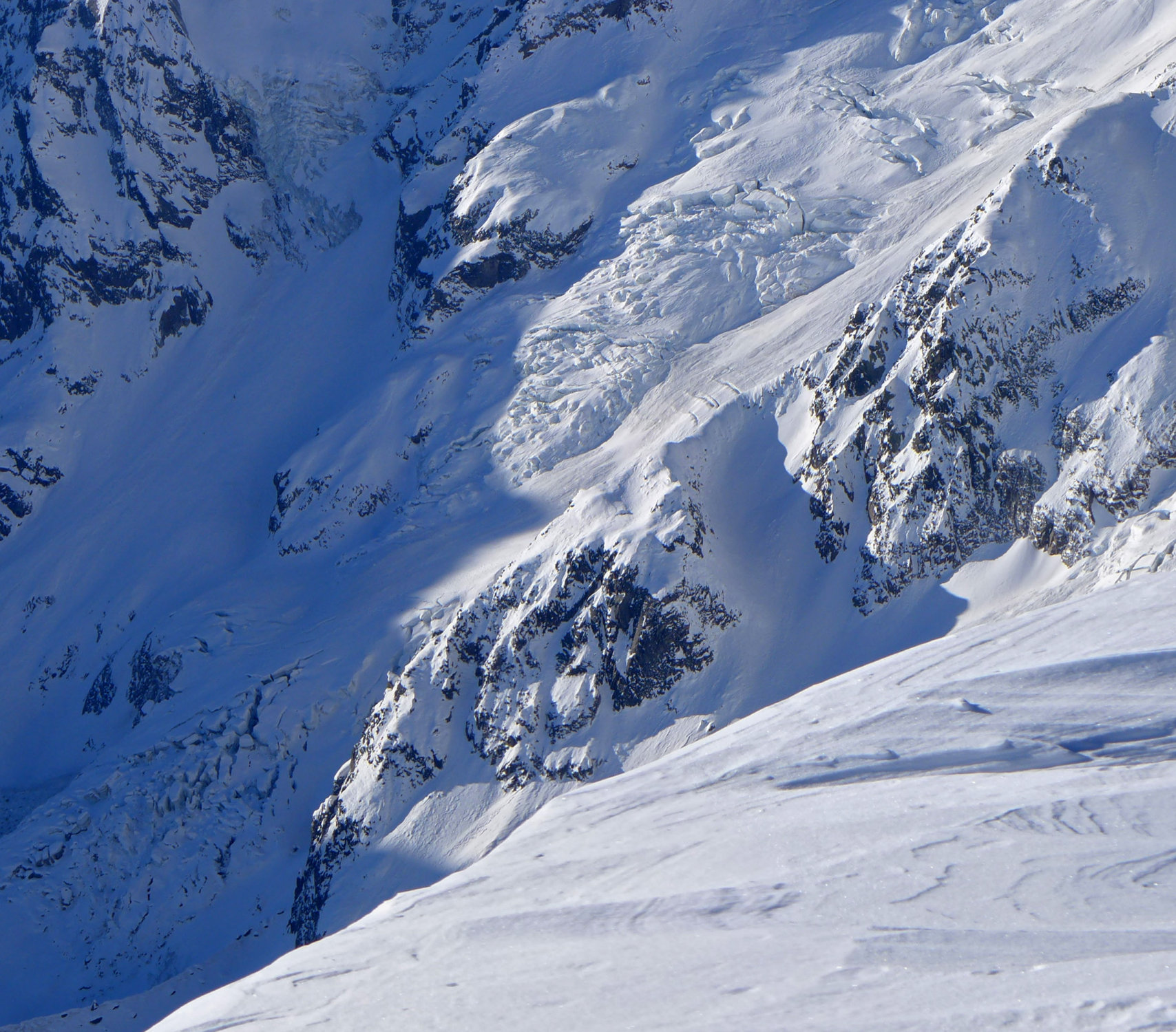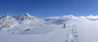 3000..3500 m: 230-270 cm Schnee; Spalten gut eingeschneit.