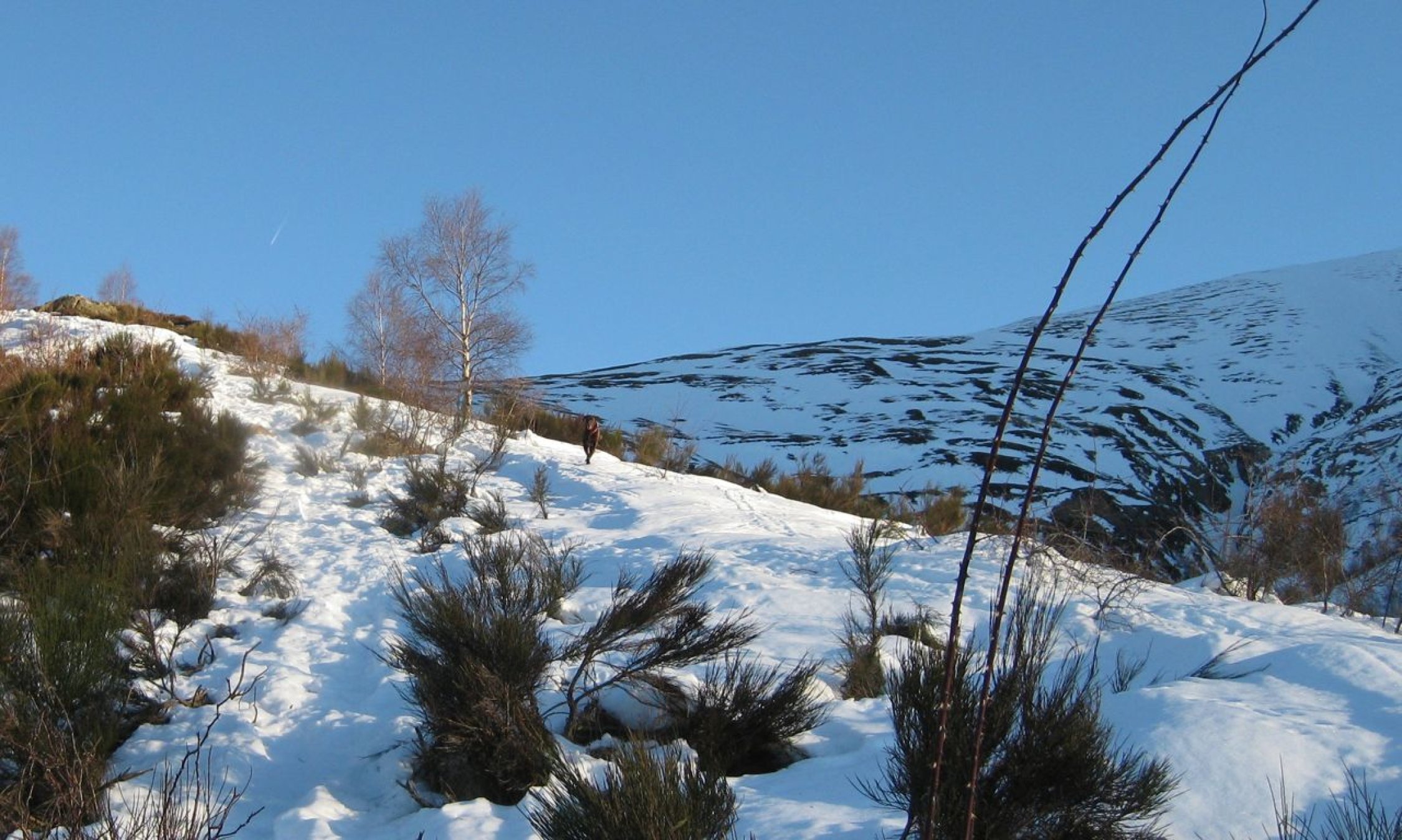 Von der Pfarrkirche oberhalb von Colla ganz knapp genug Schnee. Mit etwas Spürsinn findet man aber immer den einen oder anderen Fleck. Oben stark windbearbeitet und generell sehr knapp. Nach klarer Nacht gut duchfroren und um ca. 11 Uhr schon ordentlich aufgefirnt.