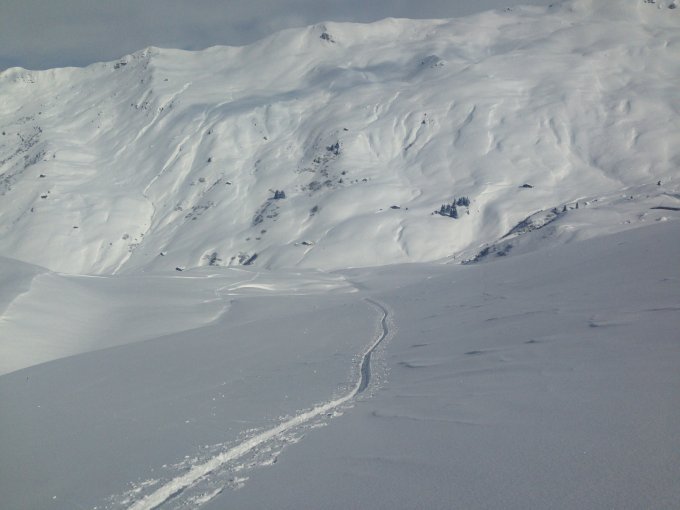 Oben etwas abgeblasen; Vorsicht auf Triebschneefelder.