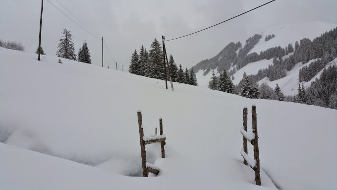 Der Neuschnee liegt auf einer dicken Harschschicht und hat keinerlei Bindung mit der Unterlage.