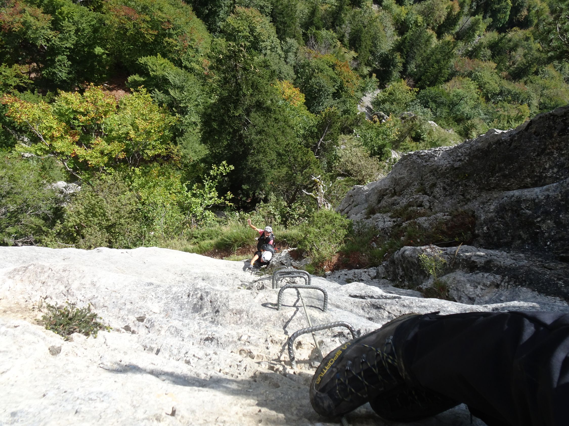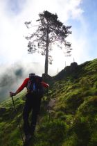 bis zum Gipfel waren die Wege und Felsen trocken. Das "ausgezeichnet" war ein wenig getrübt, da wir über die Leiter abstiegen und der Weg ab der Leiter bis zum Gätterlipass war, wie zu erwarten, sehr rutschig. Während des Aufstieges hatten wir Sonne und Aussicht; auf dem Gipfel waren wir leider in Wolken gehüllt.