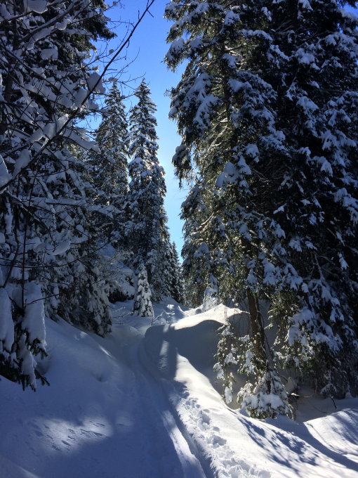Nordostabfahrt heute definitiv zu heikel und nicht befahren (vernünftig). Ausserdem trieb der Wind ordendlich sein Unwesen in der Höhe, sodass in der Abfahrt unschöner Winddeckel im Gipfelbereich aufwartete. Danach etwas schwerer, aber dennoch wunderschöner Pulverschnee.