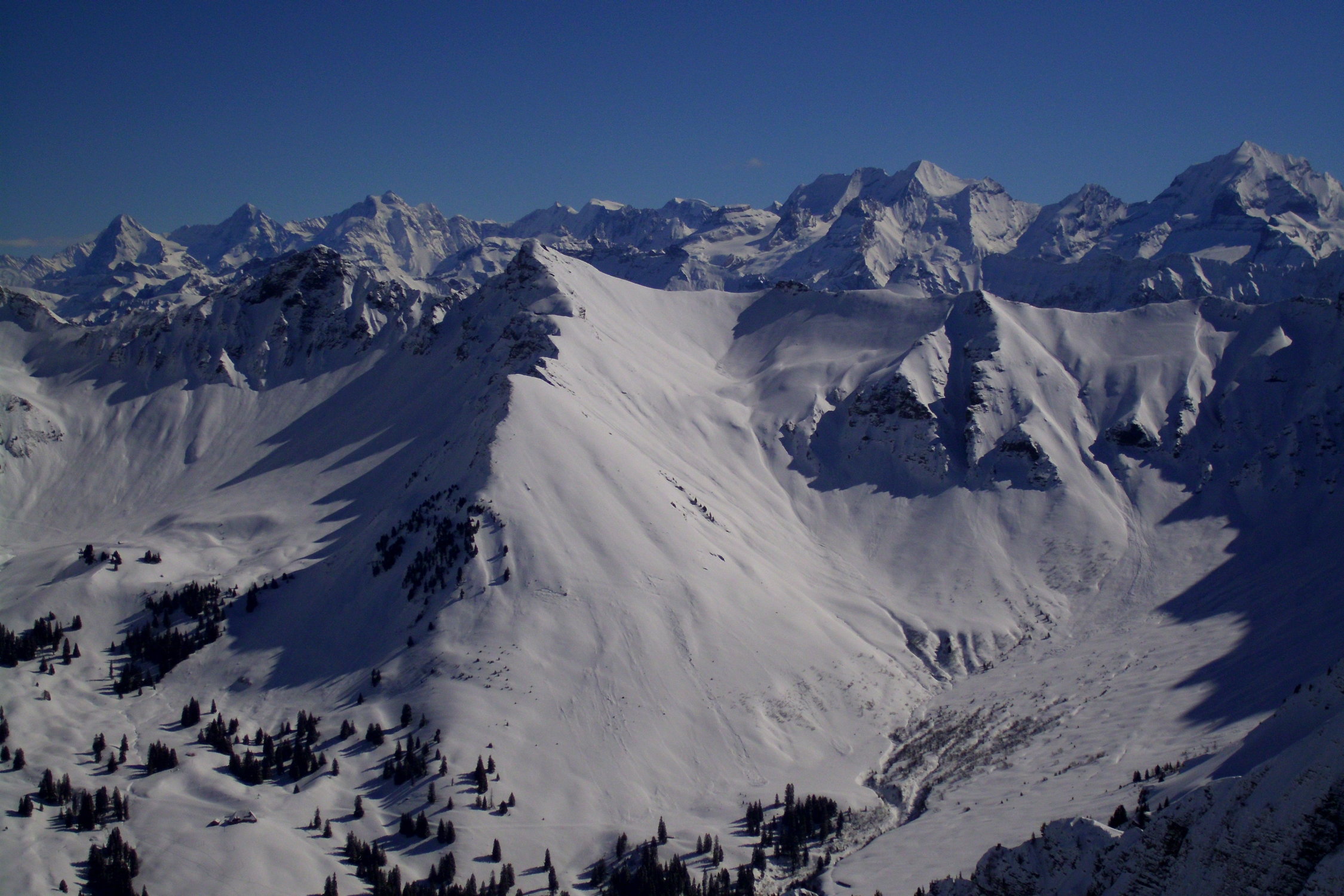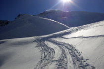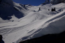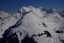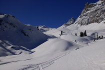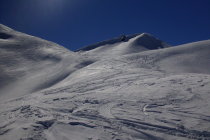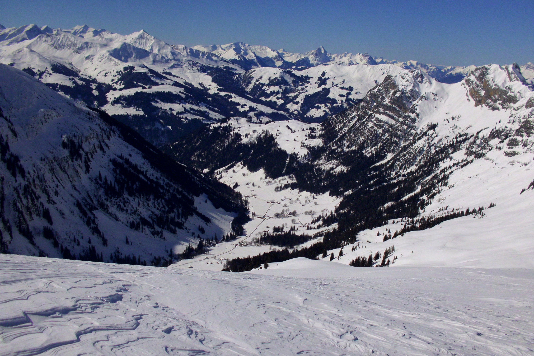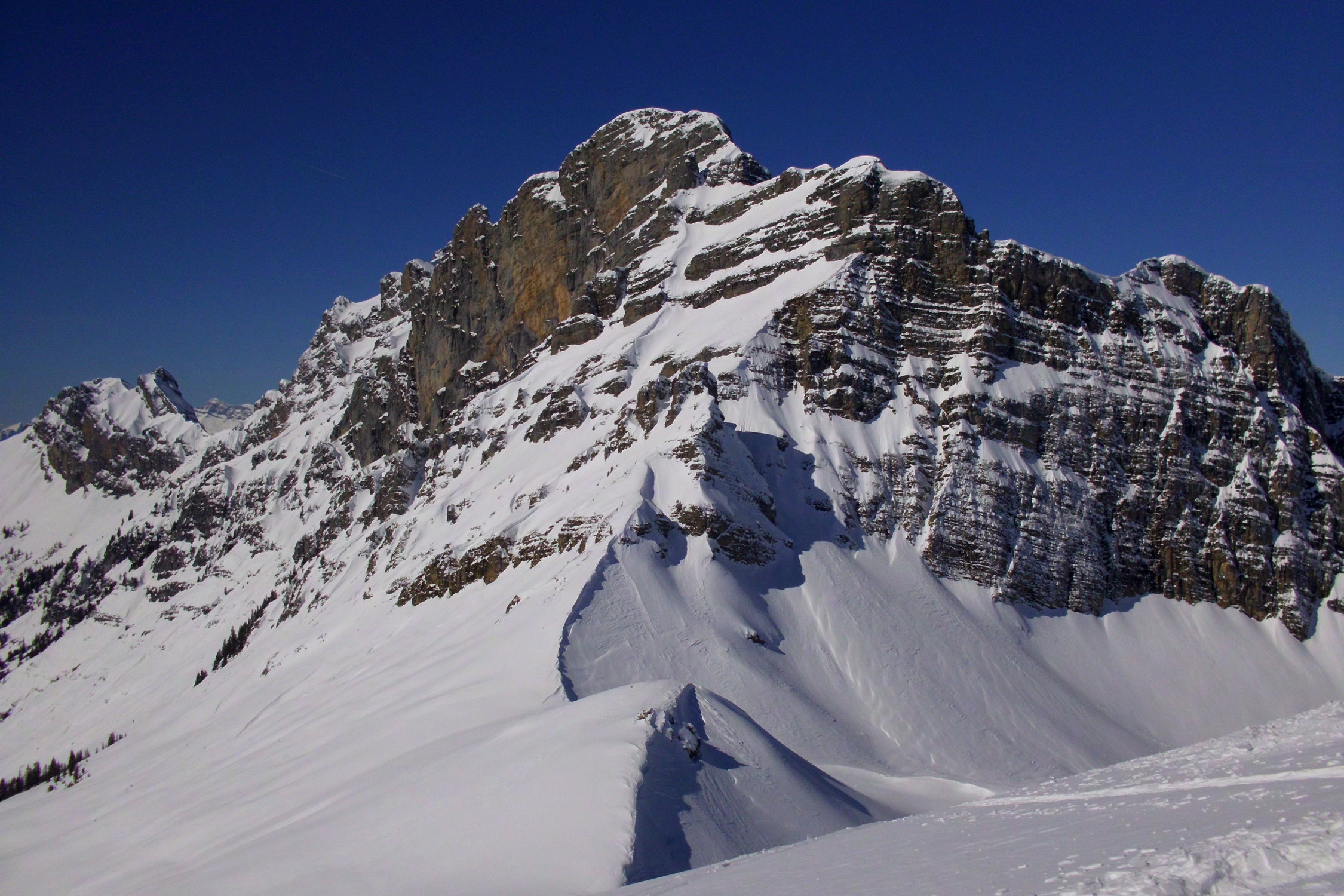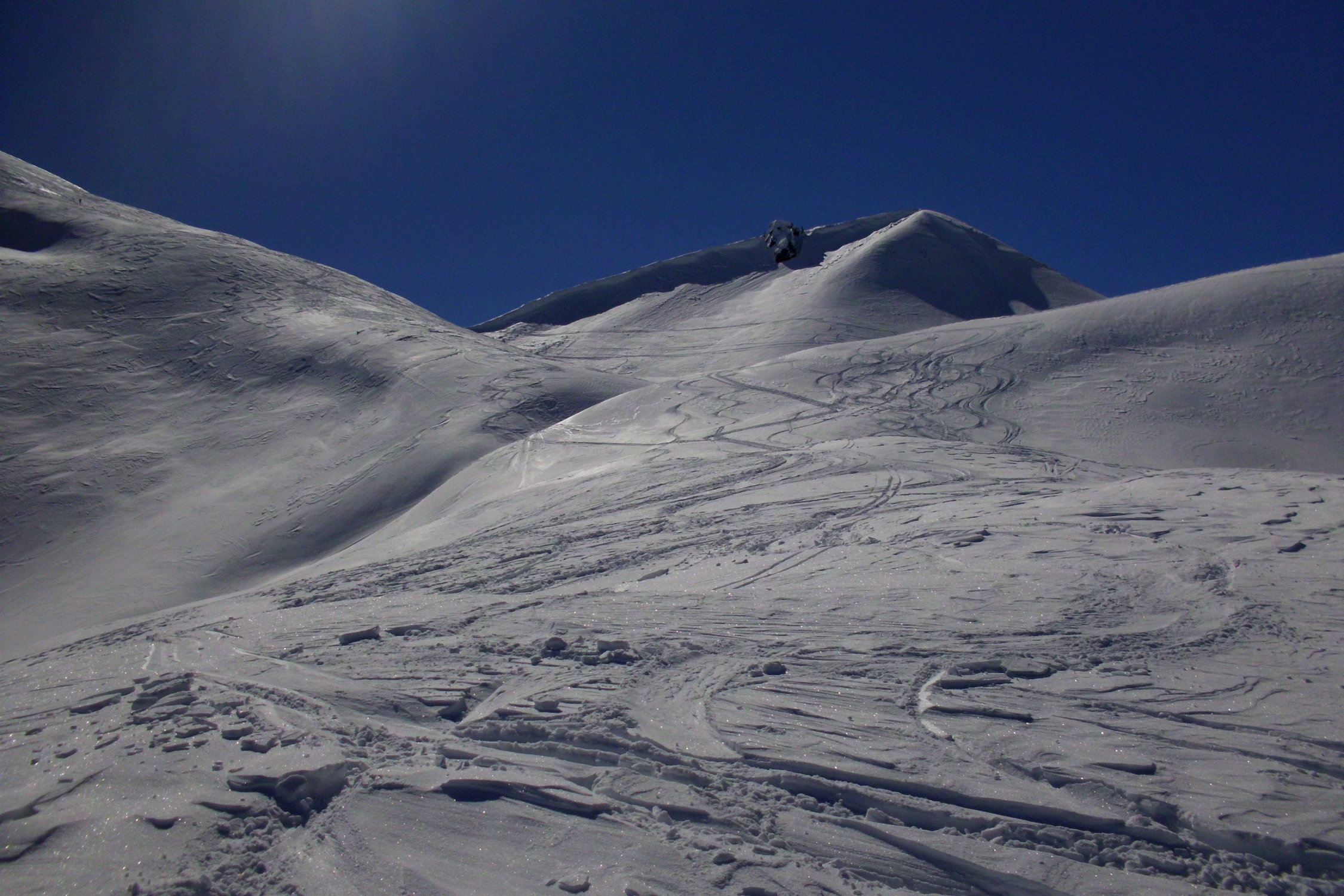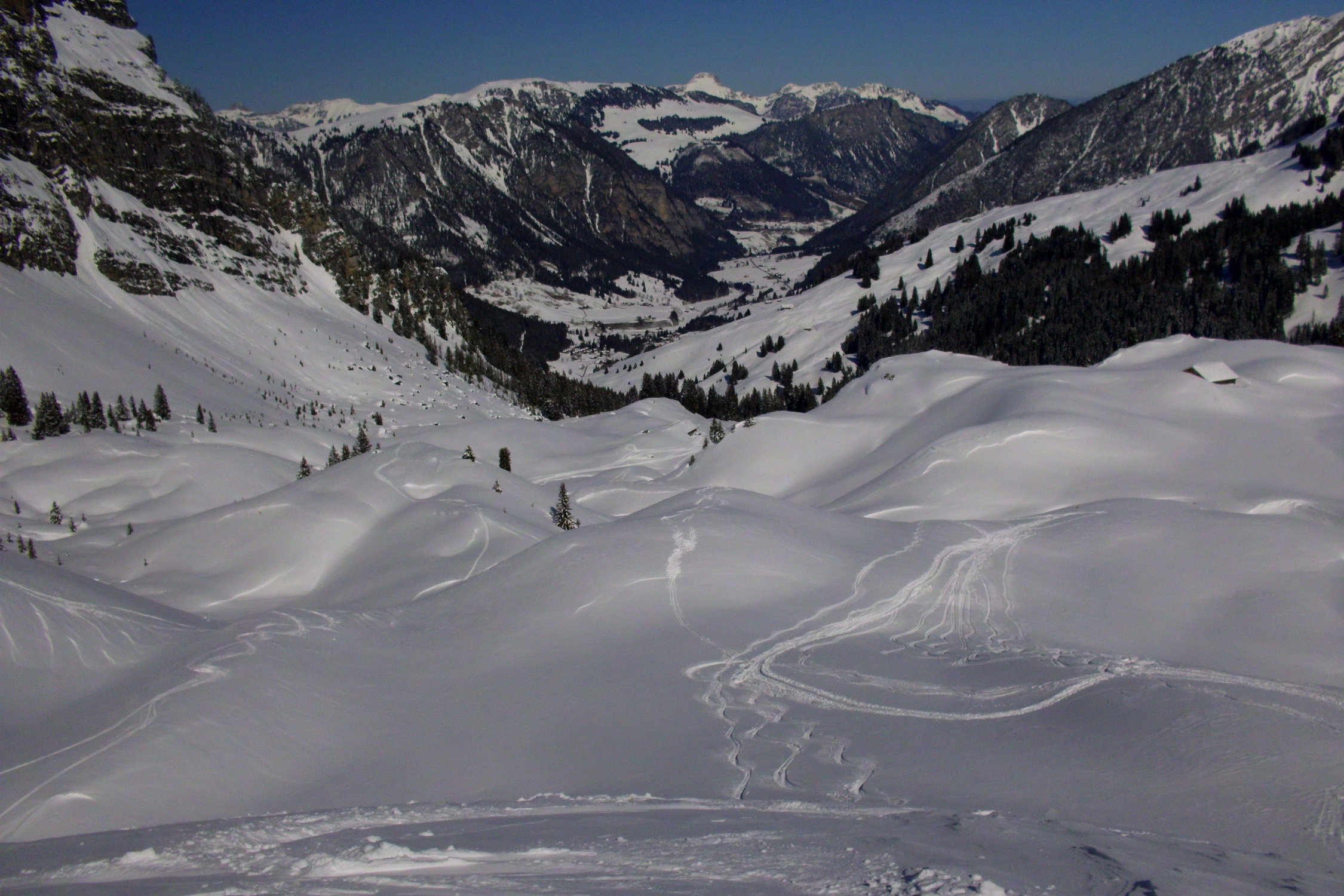 Auf der ganzen Tour recht gute Verhältnisse, am Gipfelhang hat die Bise auch gewirkt. Diesmal lag der Schnee auf Färmelseite.
