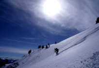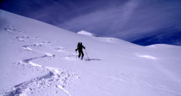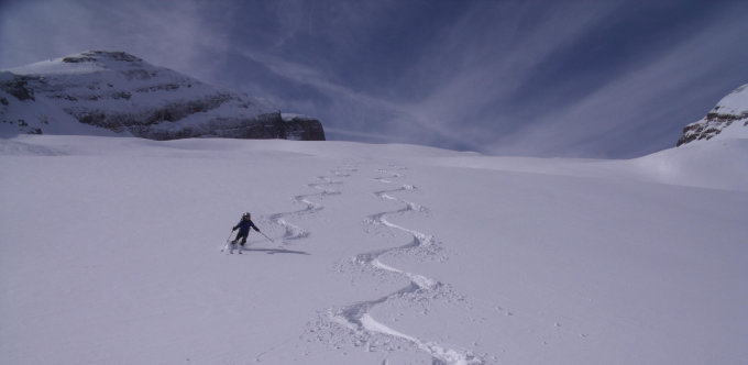 Wunderschöne Tourenverhältnisse. In den Nord- und Osthängen liegt frischer Pulverschnee. Die Westhänge haben einen Deckel. Bei geschickter Routenwahl auch bei Stufe 3 gut machbar. Die Temperaturen waren hoch, weshalb wir bei Skidepot kehrt gemacht haben.