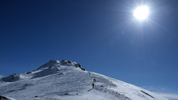 Nicht ganz optimale, aber weitgehend ganz vernünftige Verhältnisse. Im Bereich der unteren Almen mehrheitlich Bruchharsch weiter oben, ca. 100Hm unter Povers Hochleger ganz guter Pulver. Im Bereich des Grates abgeblasen, aber fahrbar.