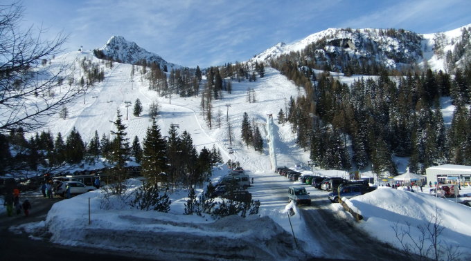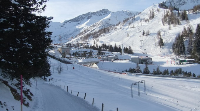Pulverschnee am späten Morgen schon klumpig. Bis Sassförkle ist der Winterwanderweg gewalzt. Abstieg über Okstola und den "Malbi"