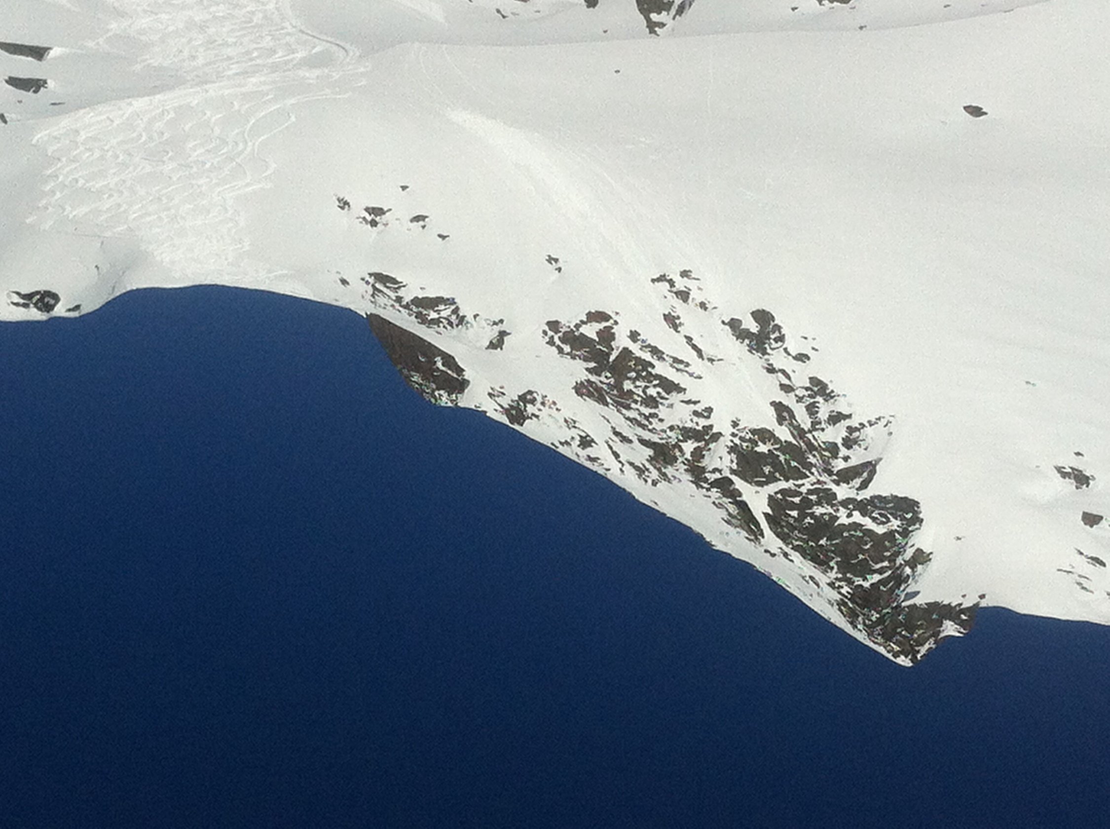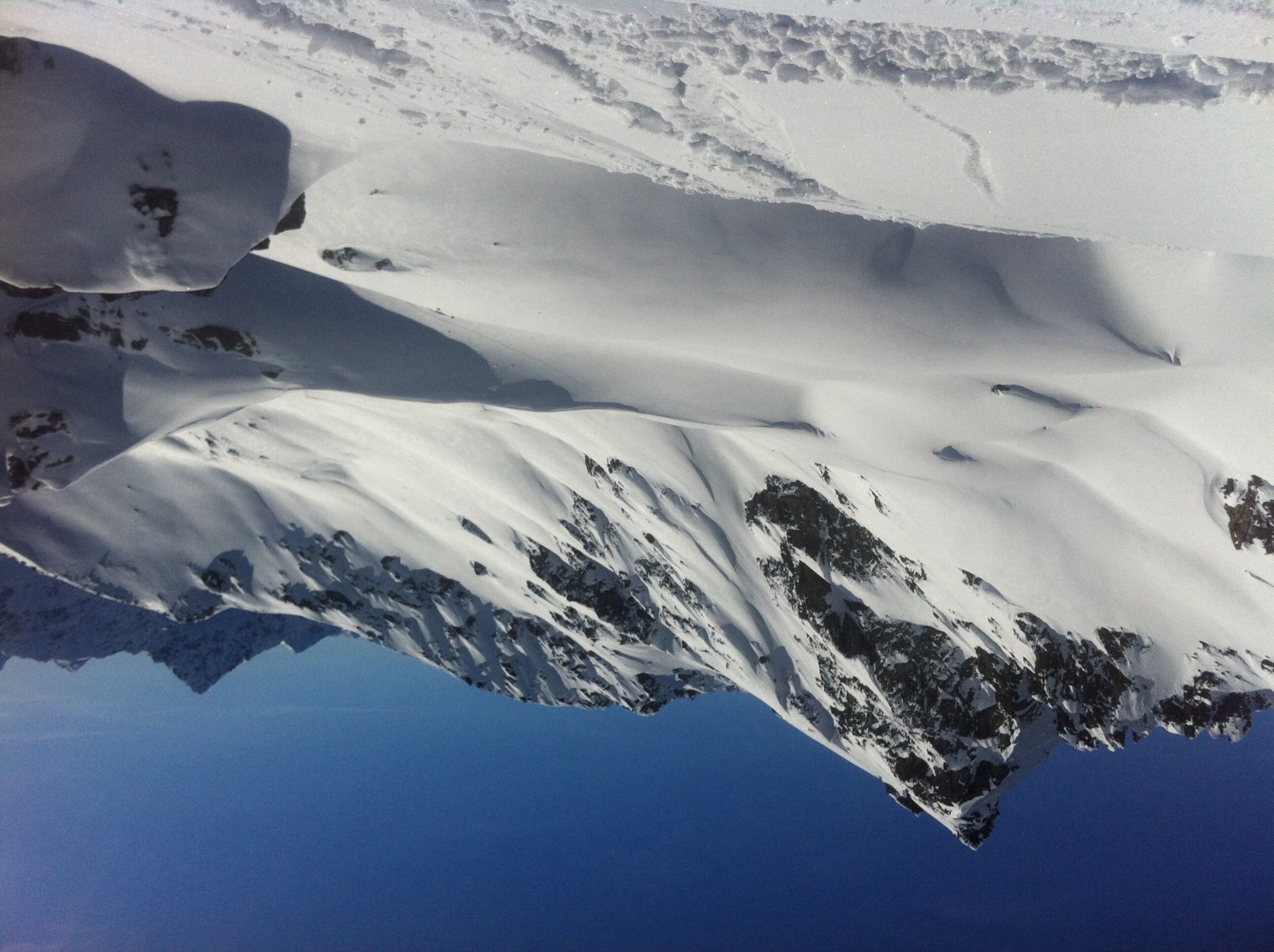 Der Triebschnee im steilen Gipfelhang ist von der Sonne stark umgewandelt, aber in der Tiefe liegen teilweise grössere kantige Schneeschichten. Wächte im Obersten Teil beim Gipfel. Grössere Triebschneeablagerungen beim Eintritt ins Täl hen nördlich der Felszacken 2753 verlangen Vorsicht (E791505/N185561). Im Gegensatz zum Tschuggerberg sind auf der gegenüberliegenden Nordseitigen Exposition etliche kleine bis mittelgrosse Schneebretter abgegangen. Der Triebschnee (linse in kleiner Mulde) der vergangenen Tage liess sich oberhalb Tschuggen in nordseitiger Expo mit etwas Skistampfen auslösen.