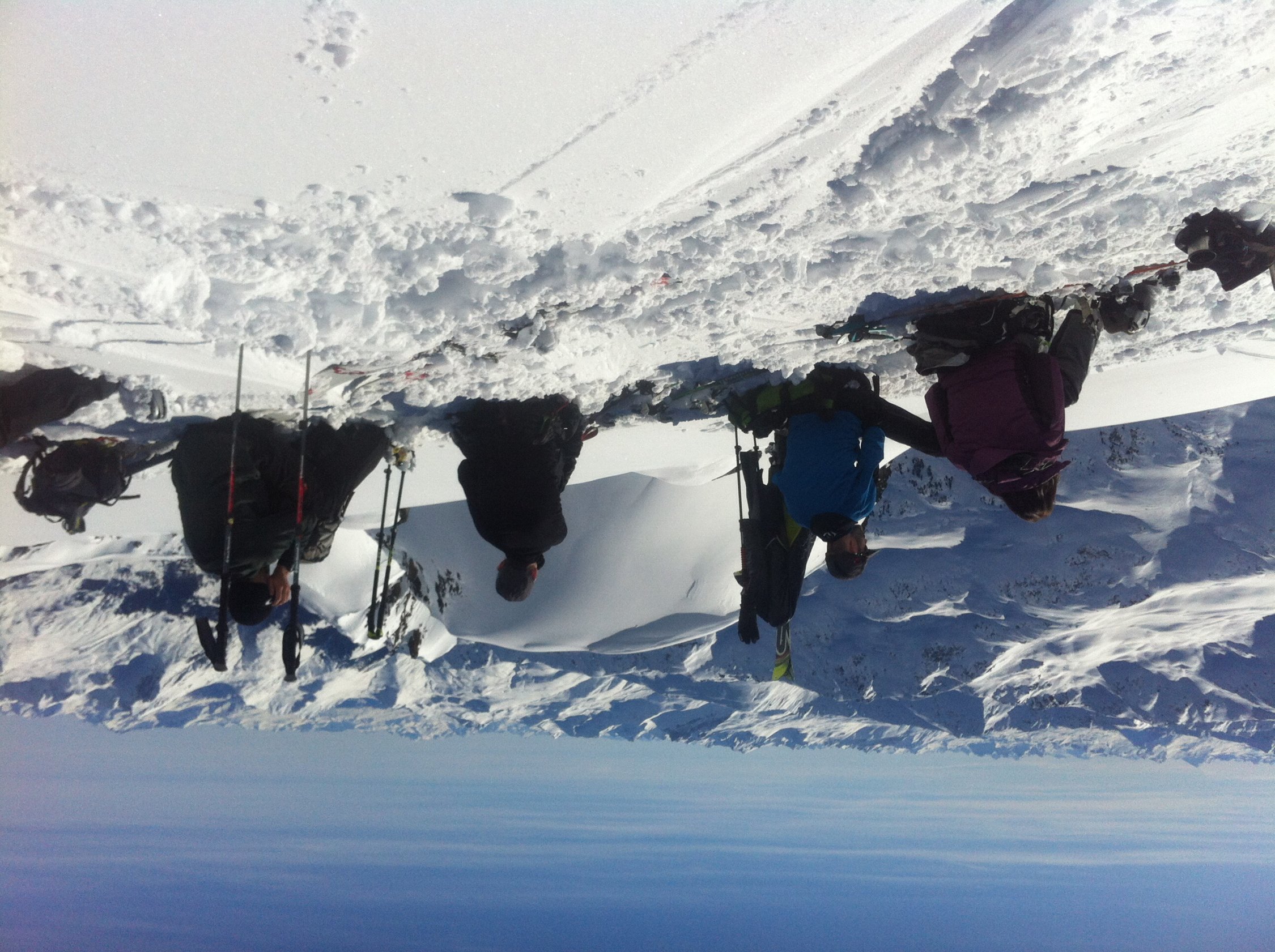 Schmelzbruchharsch von der Pischaberbahn bis Tschuggen um 10 Uhr. Dannach Aufstieg über Normalroute zum Gipfel. Abfahrt vom Skidepot am Gorihorn mit Schönem Pulverschnee