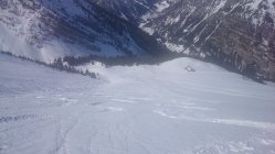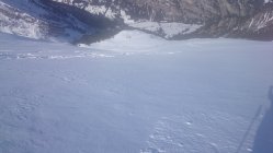 Oben sehr gute Verhältnisse, dann unter ca. 2000m harte Schmelzharschkruste. Achtung Steine nur ca. 10cm unter der weichen Oberfläche entlang der Aufstiegsroute. Route ist auf der ganzen Strecke gut mit Schnee bedeckt.