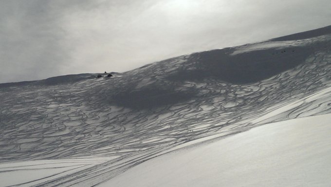 Durch die vielen Leute sehr zerfahren,im unteren Teil schon recht pappiger Schnee oben hatte es noch super Powderhänge zu fahren.