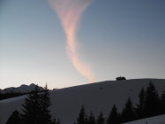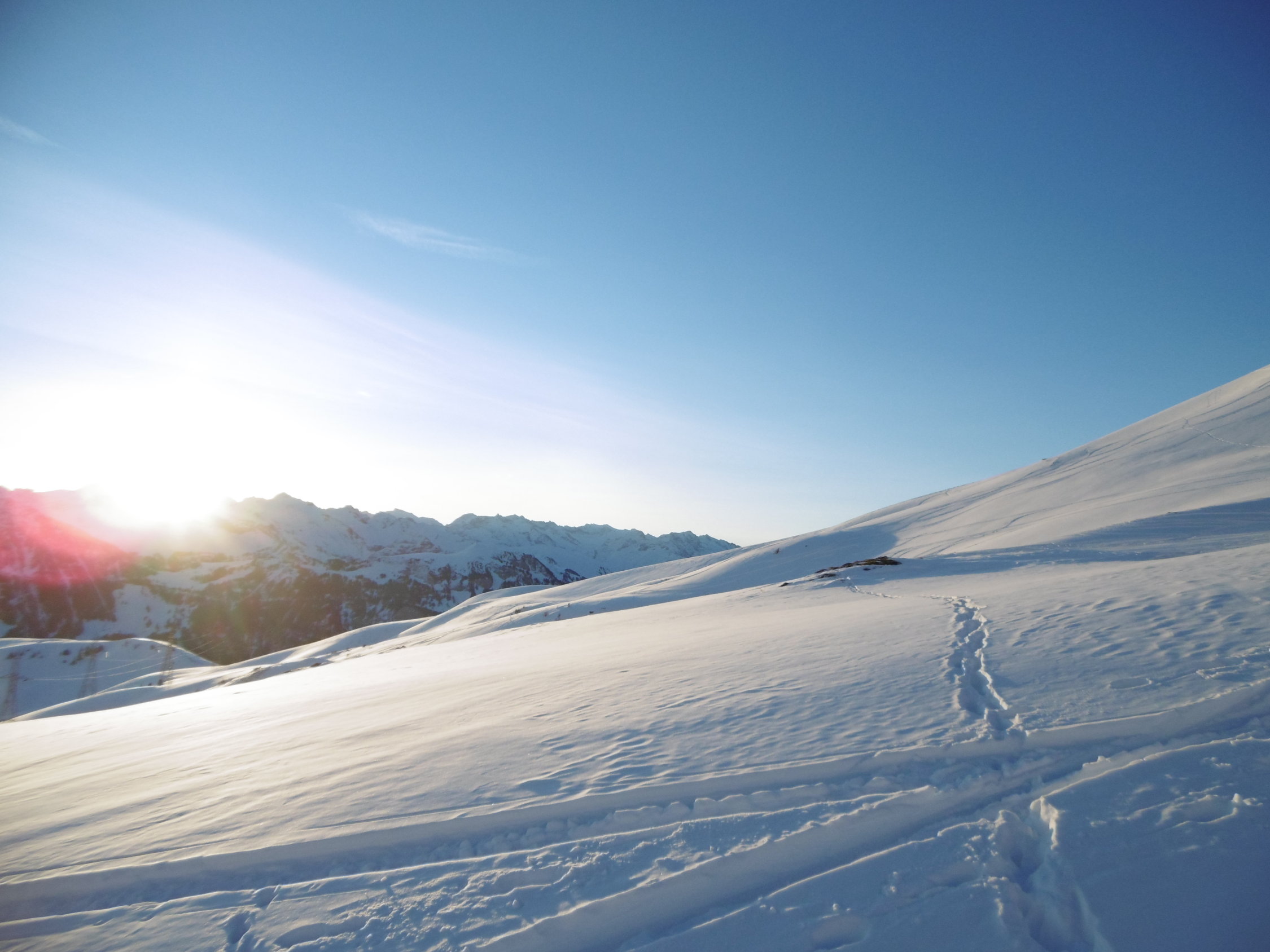 Unglaublich bei den Temperaturen, aber ab dem Parkplatz noch mehr als ausreichend Schnee. Durch den Wald teils glasig und breit verfestigt. Nach dem Wald wird der Schnee aufgrund der Südexpo etwas weniger, aber immer noch mehr als genug zum aufsteigen und abfahren. Danach wieder sehr viel Schnee vor Fluonalp. Gute Spur, am morgen glasig und teils rutschig.