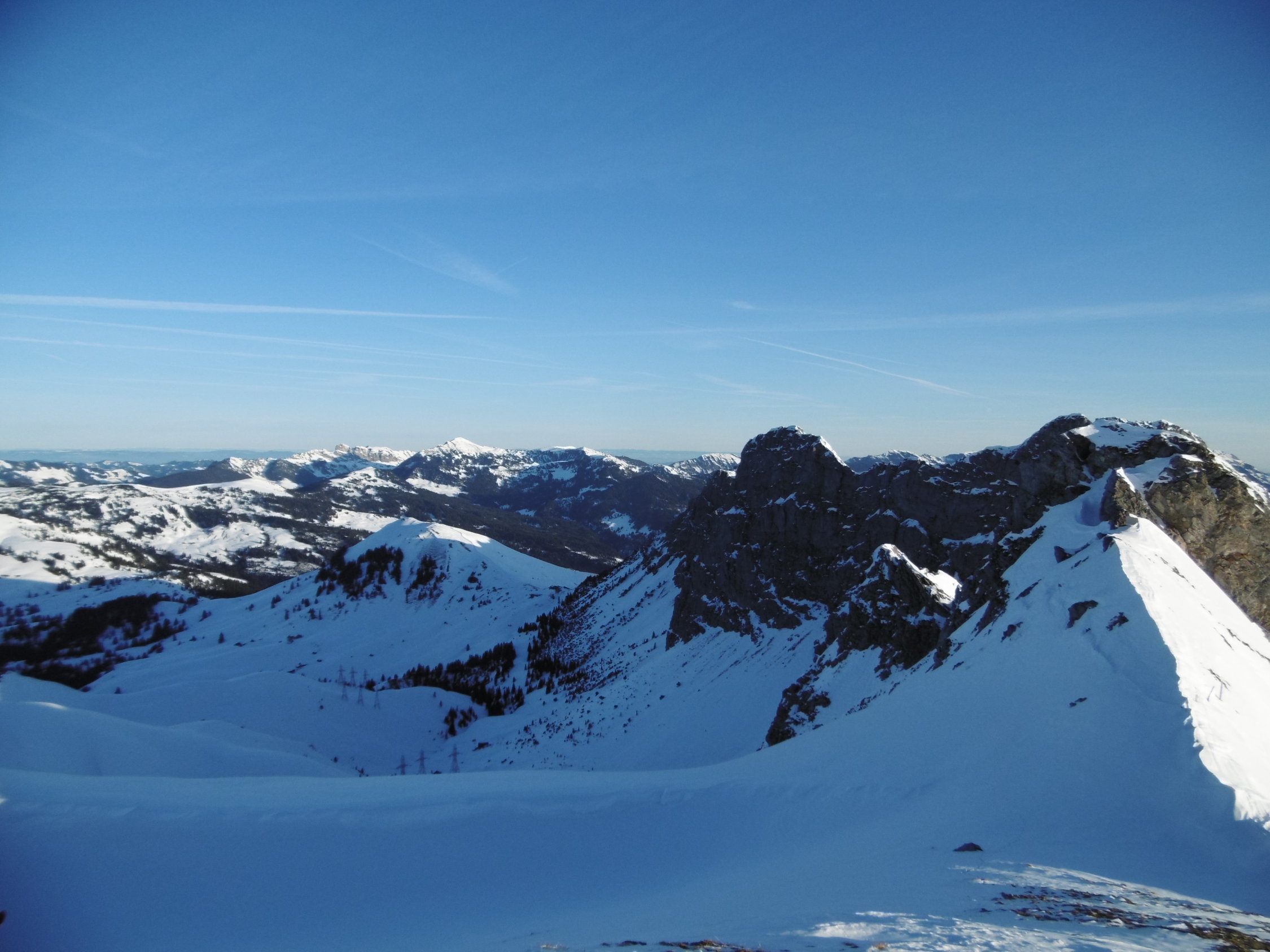 Südseitig hatte es einen schönen, nicht tragbaren und daher fordernden Deckel. Alle anderen Expositionen haben einen super fahrbaren Lockerschnee gehabt. Gipfelhang sehr gut abzufahren, nicht direkt, etwas den Grat entlang und dann Richtung Fluonalp.