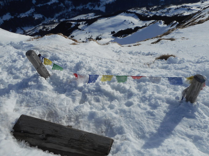 Abfahrt: Vom Gipfel bis in den Sattel 2079m "Pisten"ähnliche Verhältnisse. Das heisst: schön weich zum Fahren. In der schattigen Mulde von La Chenau noch Pulverschnee angetroffen.