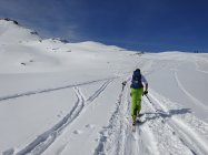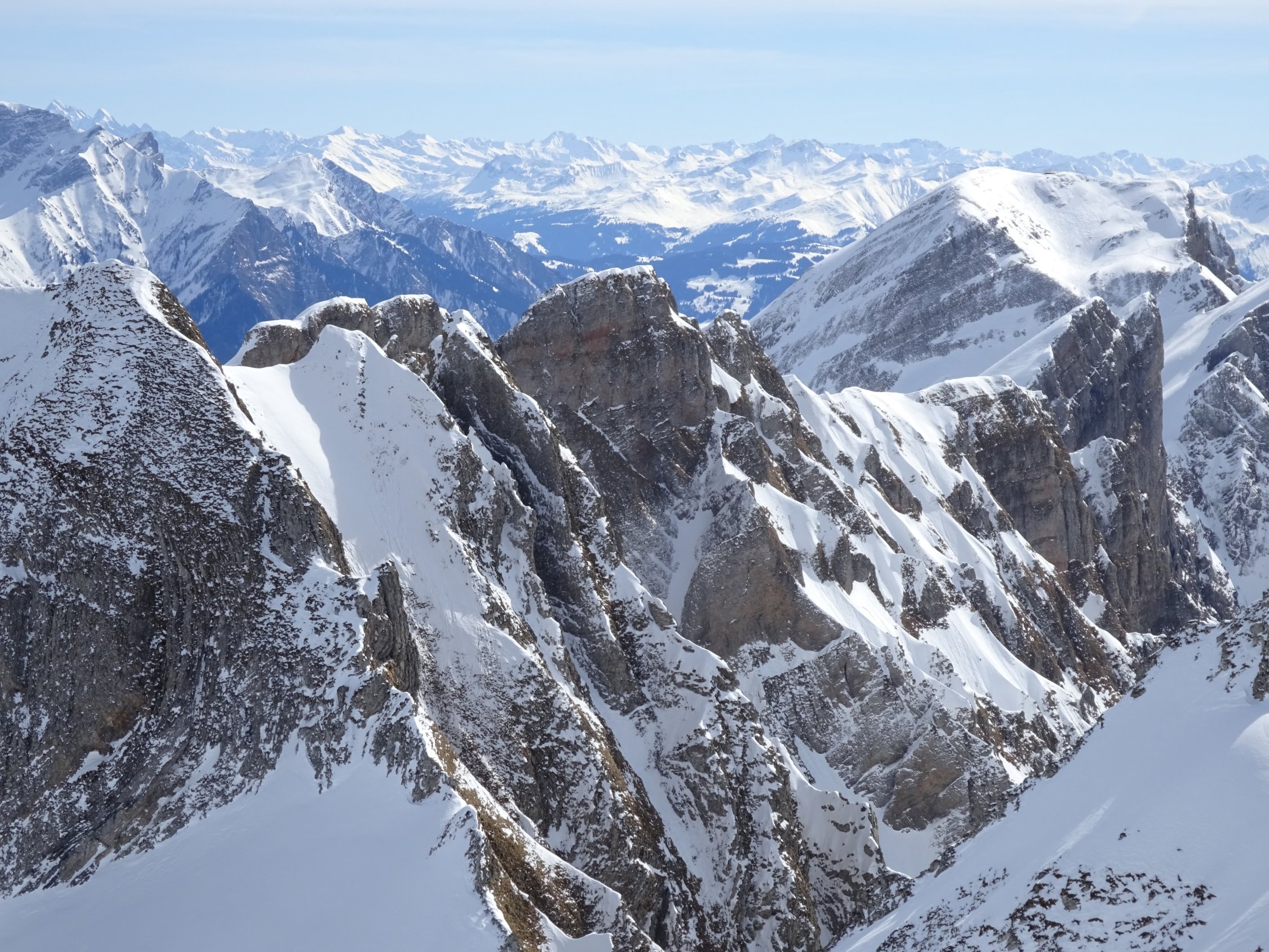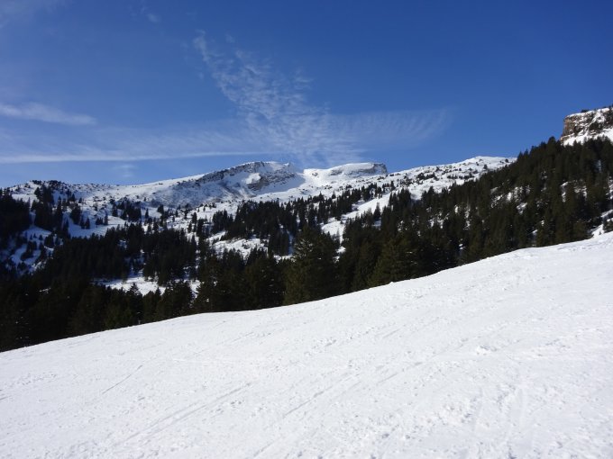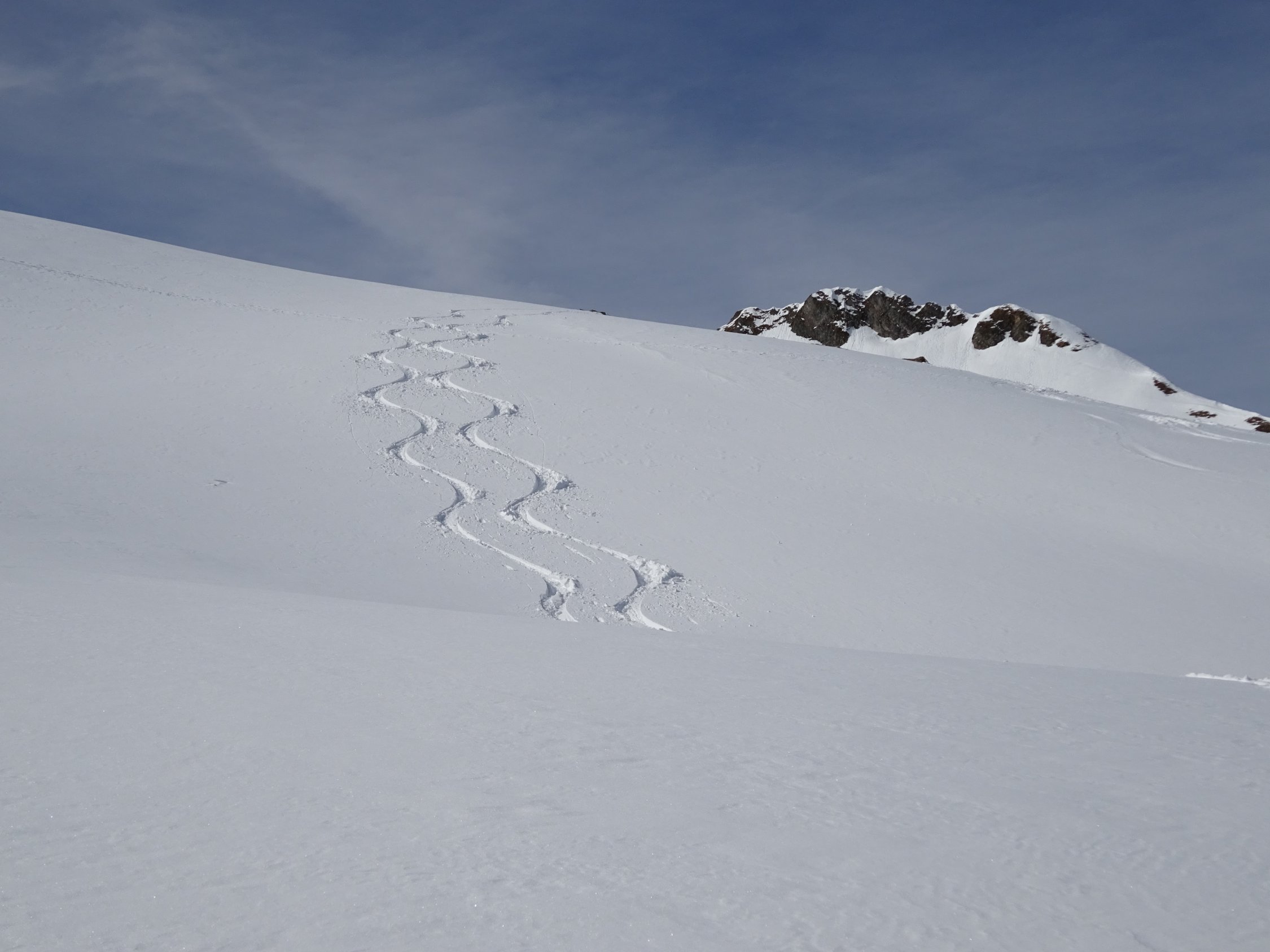 Sehr viele Tourengeher unterwegs, trotzdem haben wir noch Platz für unsere eigenen Spuren gefunden; Nordseitig noch Tiefschnee, Ostseite weicher, aber sehr gut fahrbar