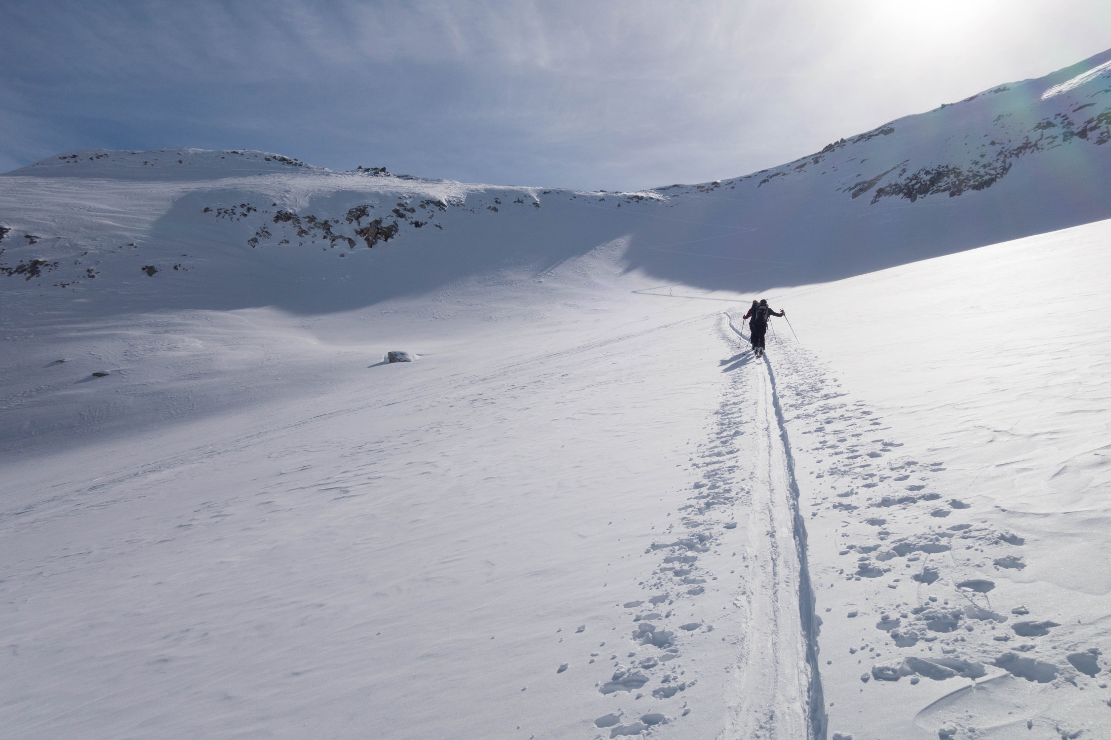 Nach "Abzweiger" Rotondo-Hütte wird es einsam. Schön gespurt bis zum Sattel zwischen Hünerstock und Witenwasserenstock ca. 2900müM.