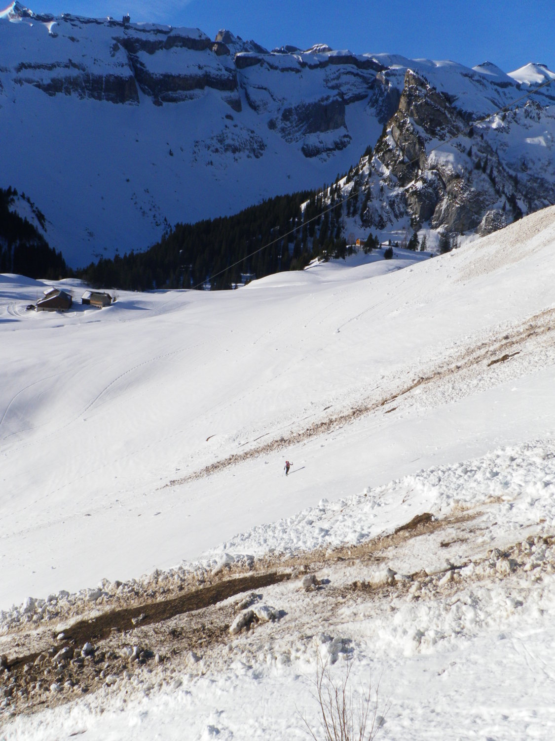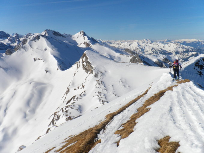 Schöne Frühlingsverhältnisse, im Schräghang von Chneuwis zu Unter Bolgen muss ein Lawinenkegel durchquert werden, ansonsten Schöner Sulz. Der Schwalmis Gipfelhang war noch schön hart und tragend. Der steile Hang vom Stöckli nach Unter Bolgen einfach genial. Die Abfahrt von Gitschenen nach Isenthal ging auch besser als erwartet.