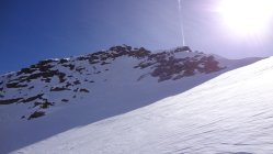 Windgepresster Schnee, sehr gut zu fahren. In den Schattige Halte zum Teil die Ski getragen.