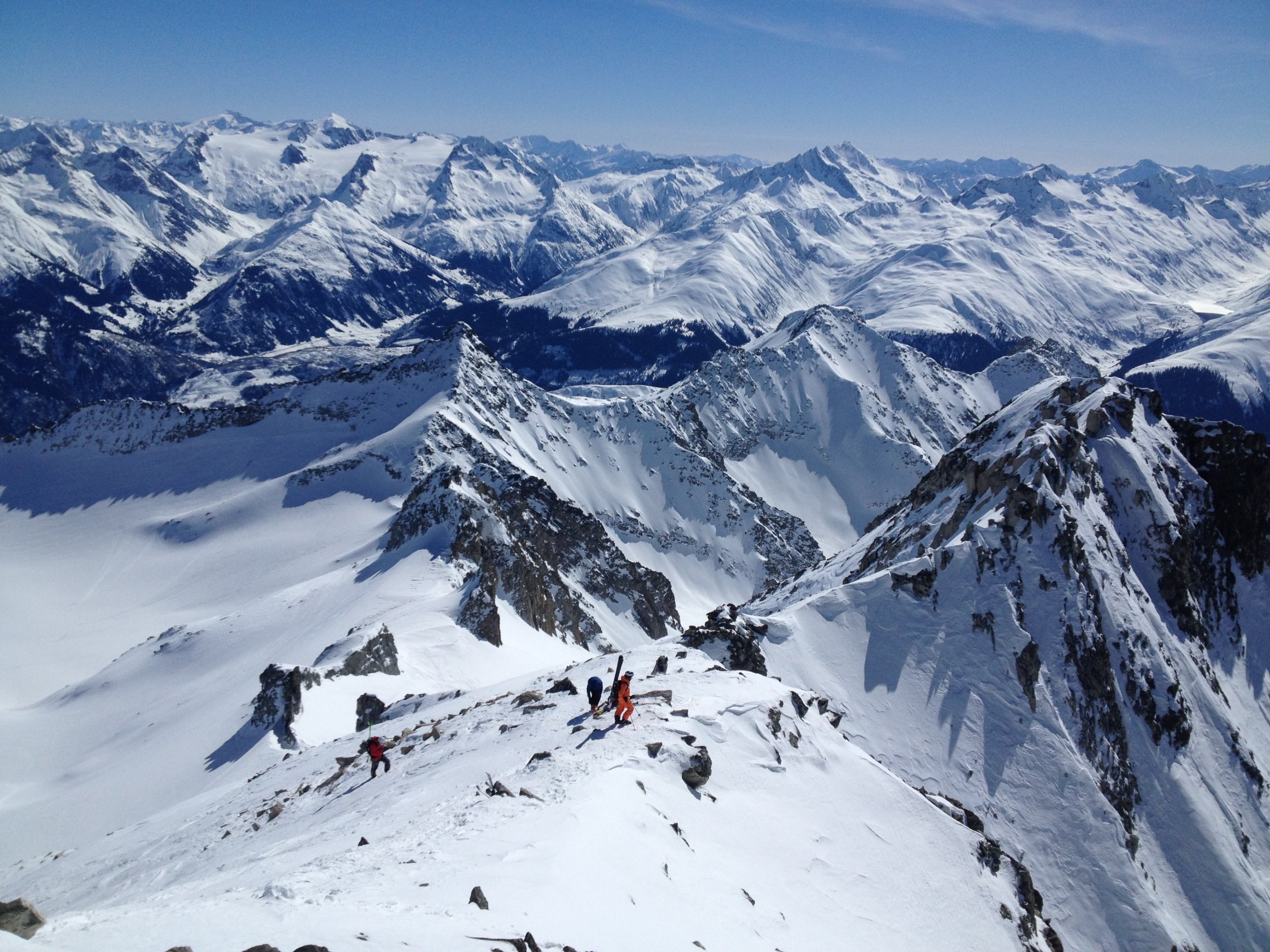 Schön. Schnee am Gipfelhang recht hart, Harscheisen nützlich. Val Strem fahrbar bis Bahnhof Sedrun. Unten natürlich sulzig.
