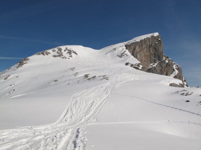Gute Schneeverhältnisse, ab Start genug Schnee, bleibt so. Gute Aufstiegsspur, wenn auch etwas hart und glasig, leicht daneben ist es jedoch perfekt. Nordostabfahrt wurde auch gemacht.