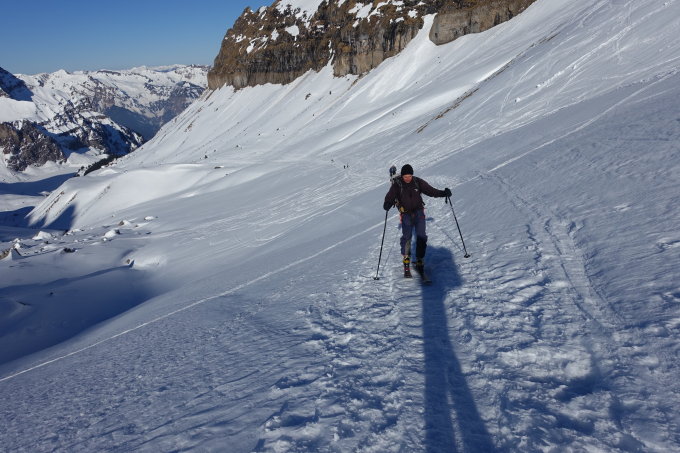Die anspruchsvolle Abfahrt von der Bannalp nach Oberrickenbach konnte heute noch mit ganz wenigen, kurzen Tragestellen gemeistert werden. Diese werden aber von Tag zu Tag länger, sollte nicht eine weitere Ladung Schnee folgen.