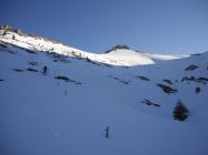 Aufstieg zum Ochsengipfel (Trittschnee) 12 Uhr Abfahrt über die Aufstiegsroute bei feinem Sulzschnee in den Hengst hinunter. Im grossen Kessel der Oberalpigle kann die perfekte Exposition gewählt werden.