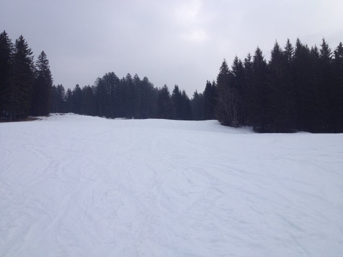 Schnee bereits durchfeuchtet, aber noch gut fahrbar.