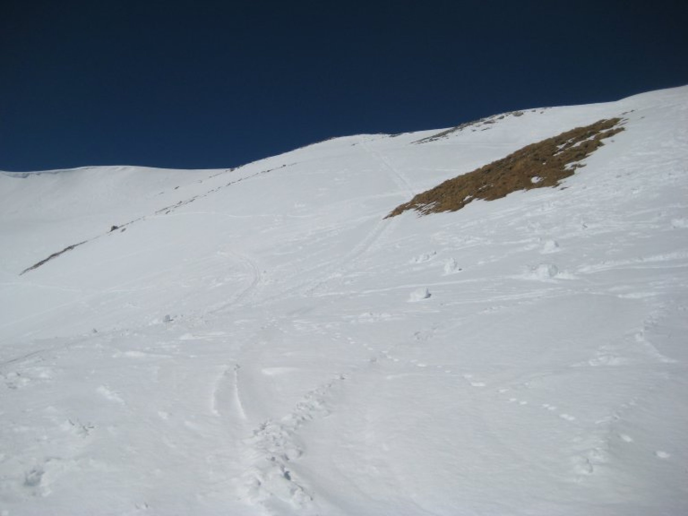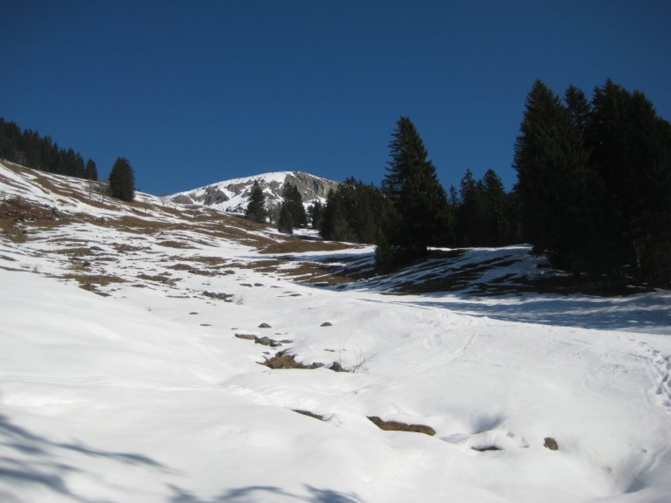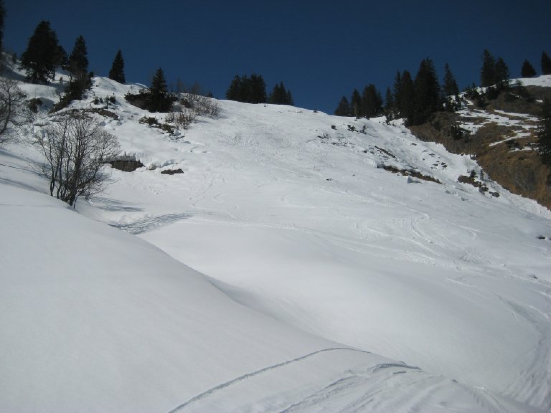 Nach Käseralpe im flacheren Teil vor den Latschen hat die Laufbichelkirche was runtergelassen, man muß da drüber(siehe auch Foto).