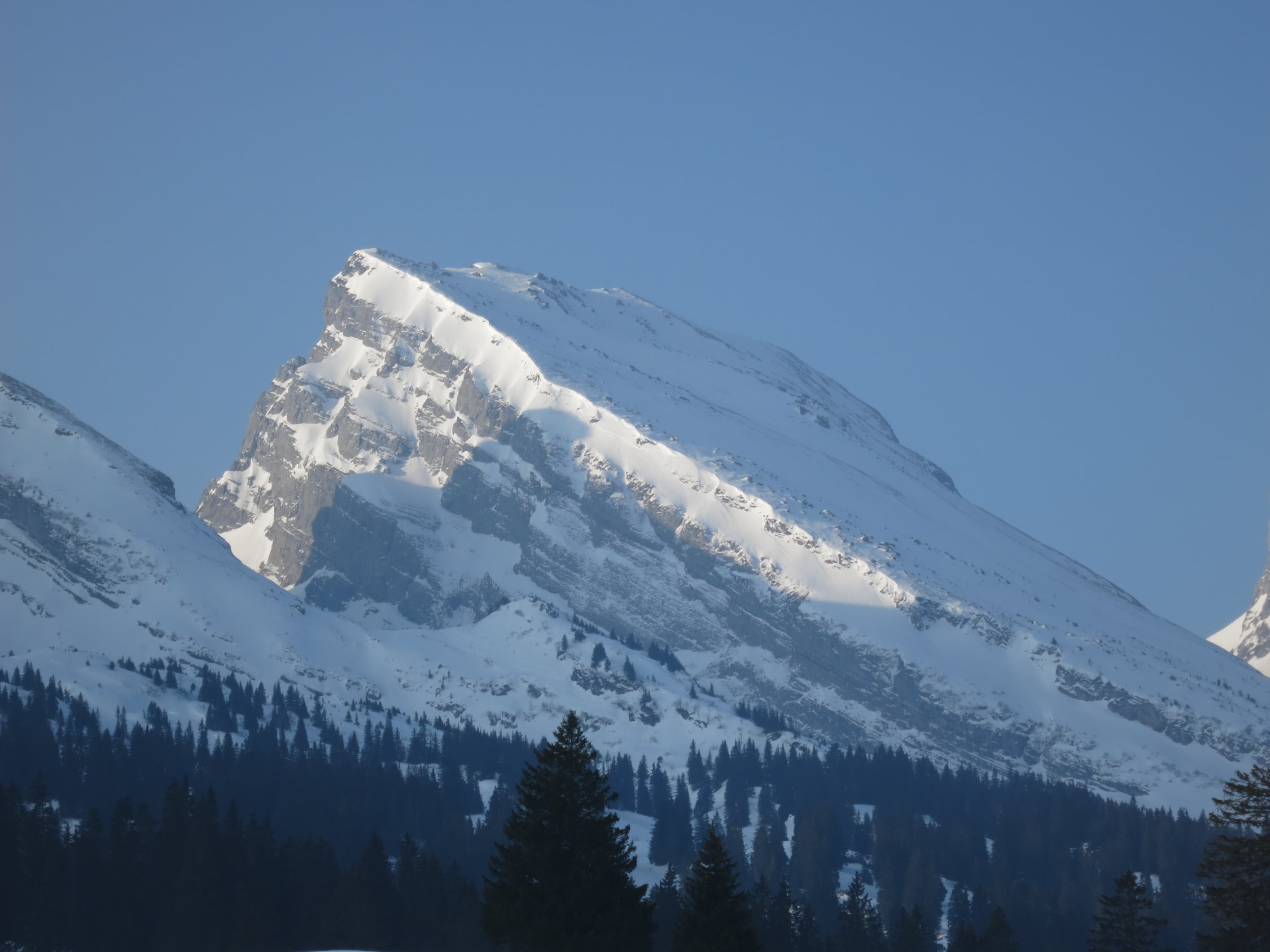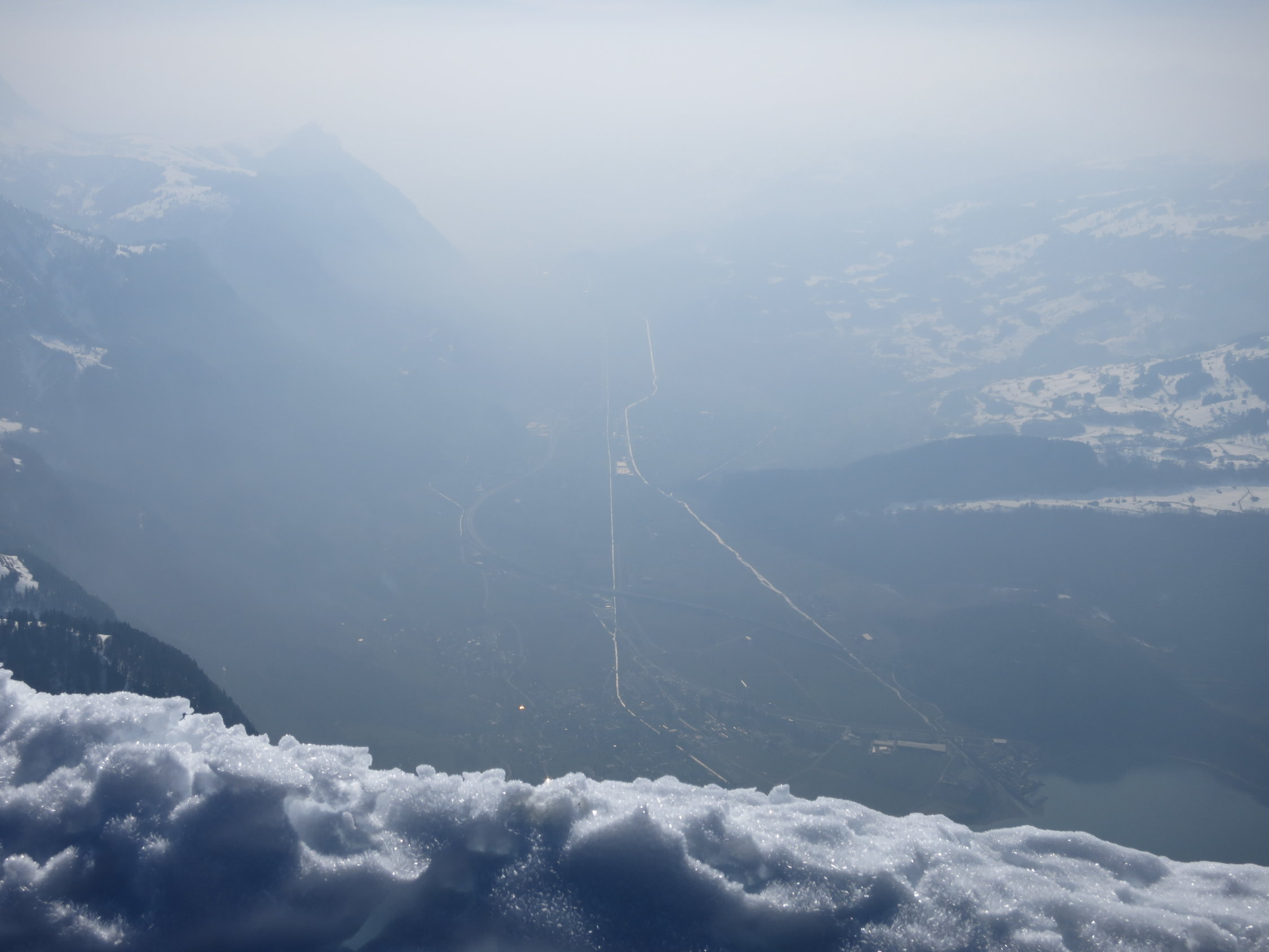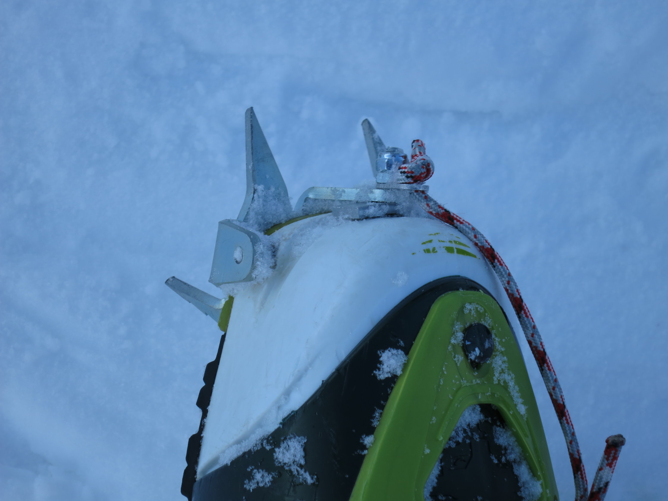 Einstieg: Felsstufe mit gutem Trittschnee, Harscheisen für Unerschrockene oder Steigeisen für Furchtsame