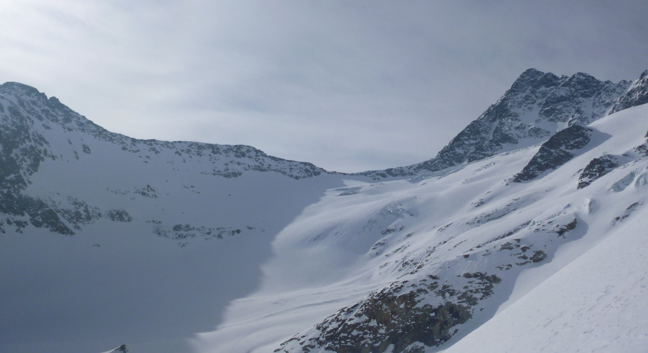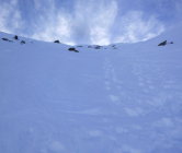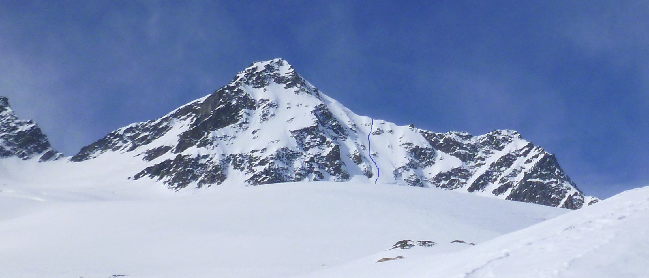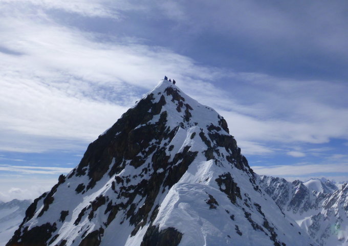 Eine Seilschaft kam vom SE-Grat, zwei haben dort gekehrt, Ostcouloir wurde ebenfalls aufgestiegen und auch abgefahren.