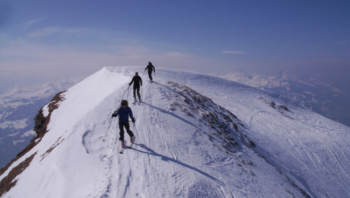 Nach dem Fulfirst haben wir den Alvier angehängt. Beste Verhältnisse im Aufstieg und in der Abfahrt. Die Steilstufe kann bis auf die letzten zirka 20 Höhenmeter mit den Ski begangen werden. In der Abfahrt dem Sommerweg folgen.